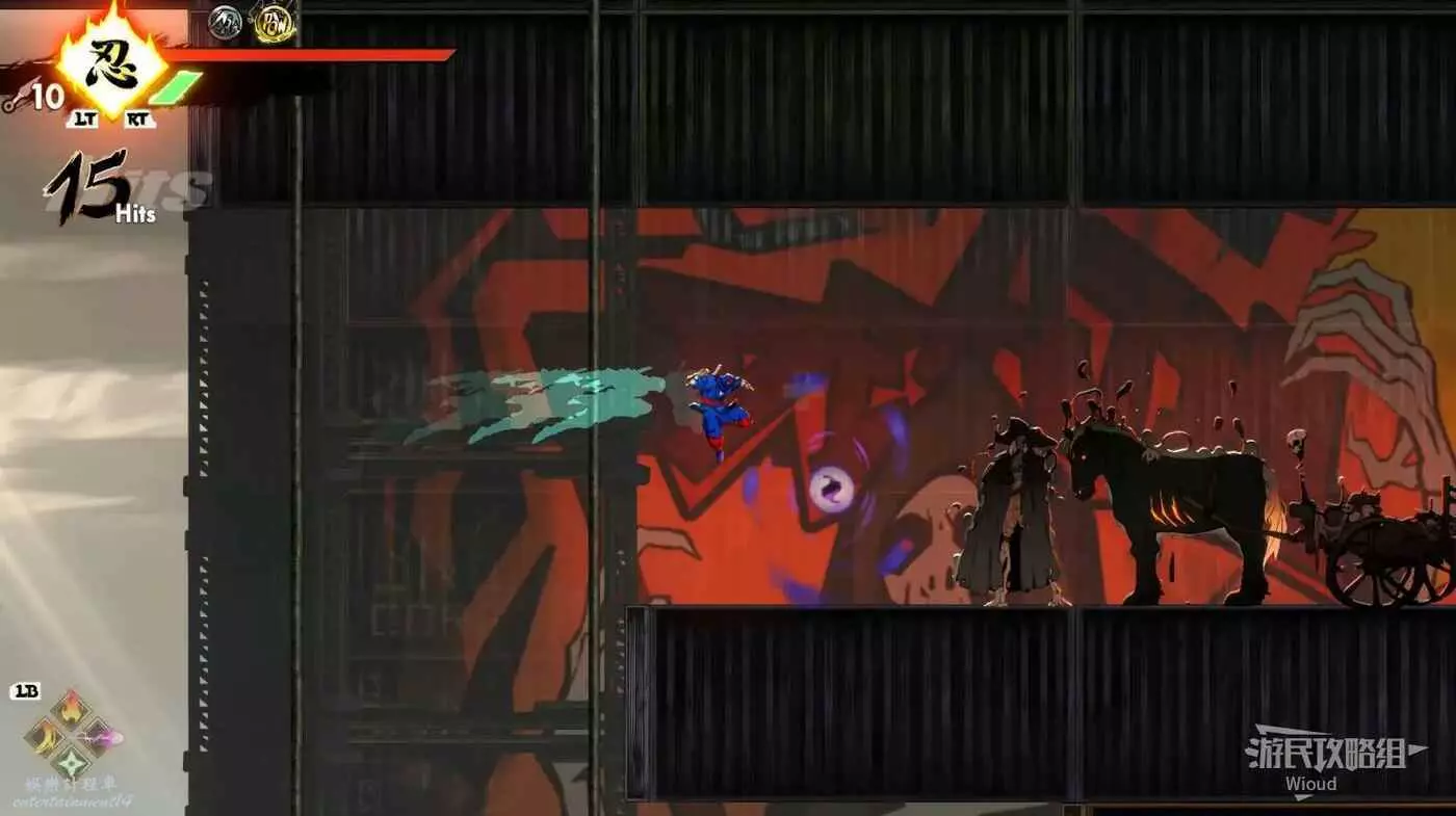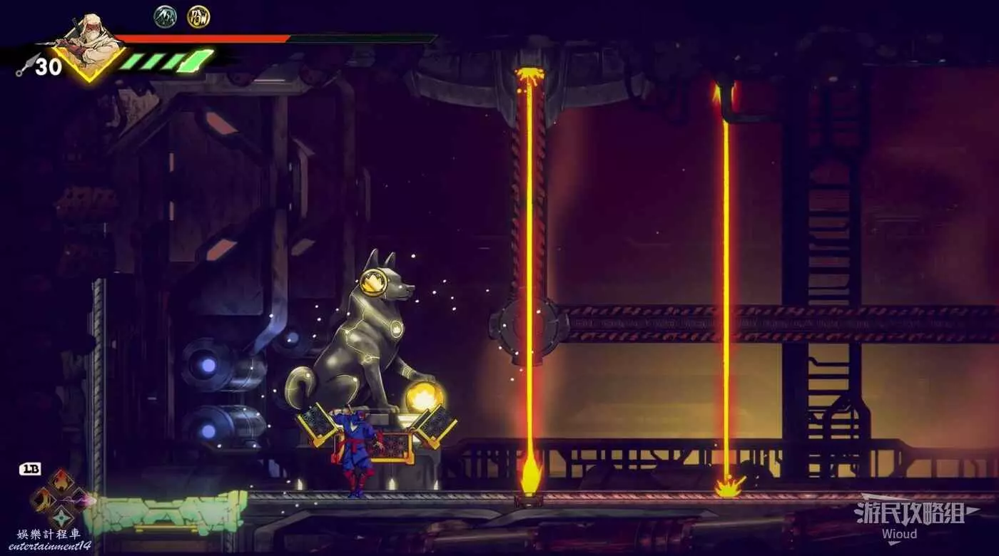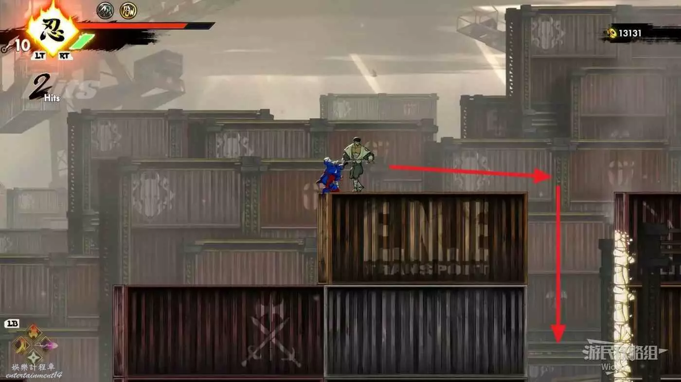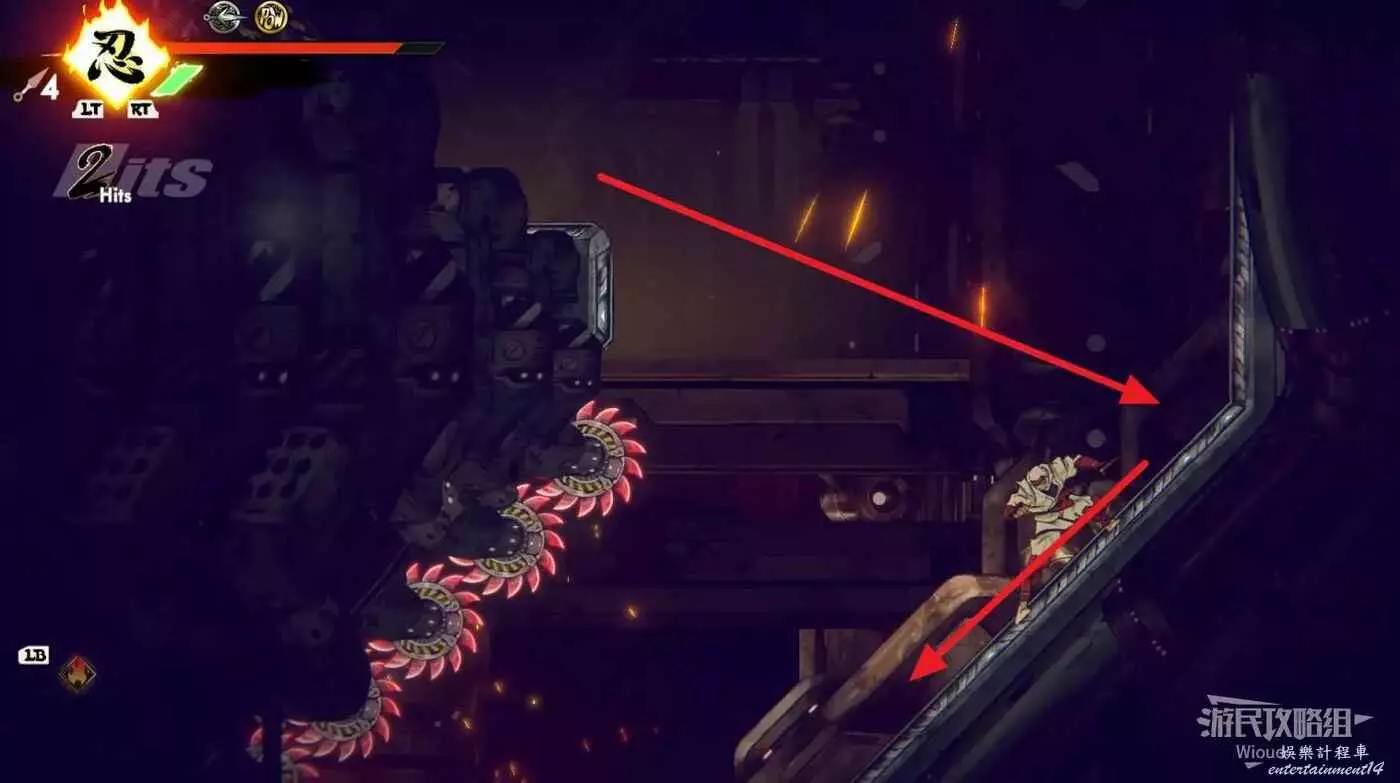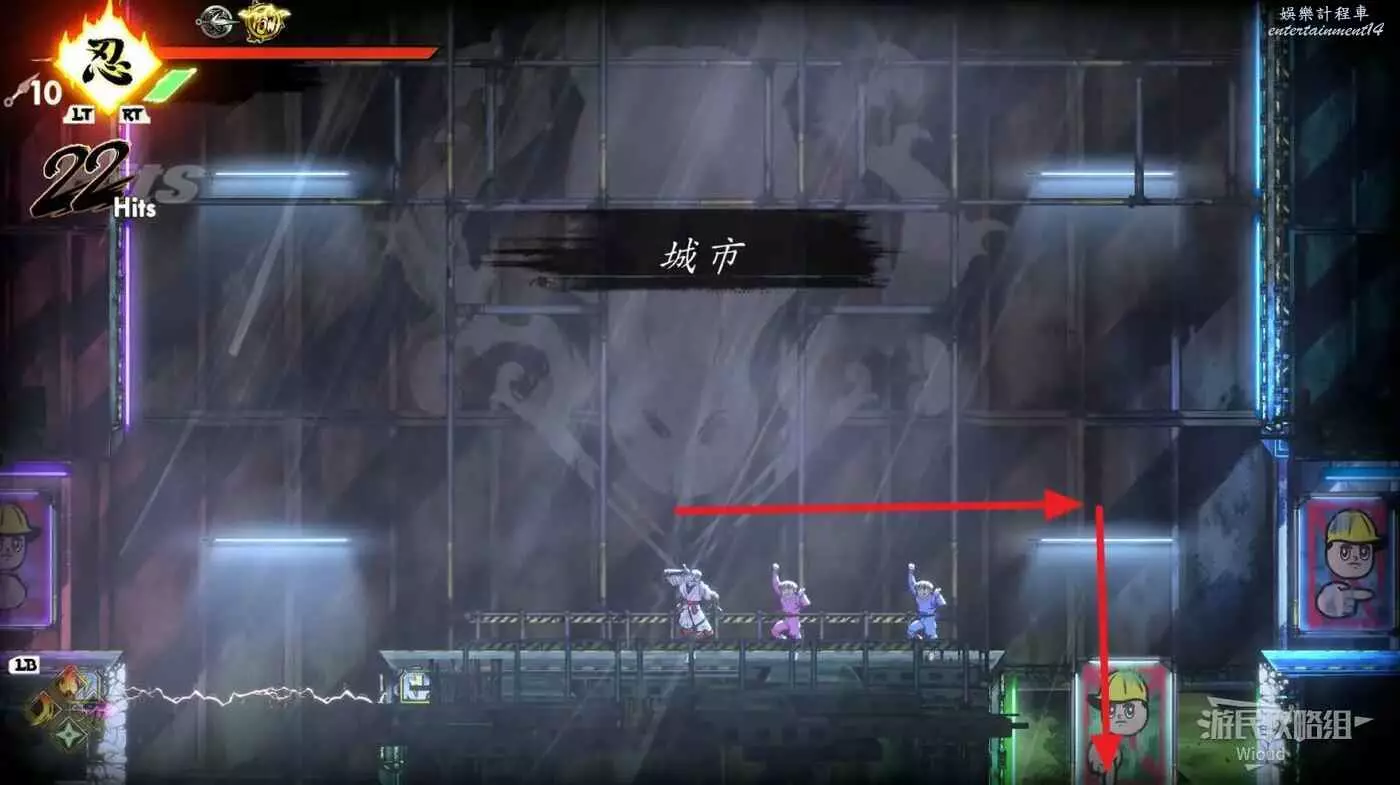 完成精英部隊的挑戰後,通過右邊的燈籠把手跳到右側第一個屋頂上,注意藍色燈籠可隨意使用,但紫色燈籠玩家站立時會慢慢往下降落,在一些機關處降落到低點會直接死亡。