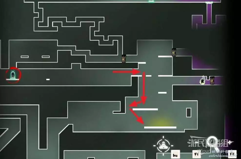 回到石碑【二號胃】處,跟隨紅色箭頭走到左下角黃色標識1的位置,破壞膿包繼續往右下角走,可找到一支【精英部隊】。