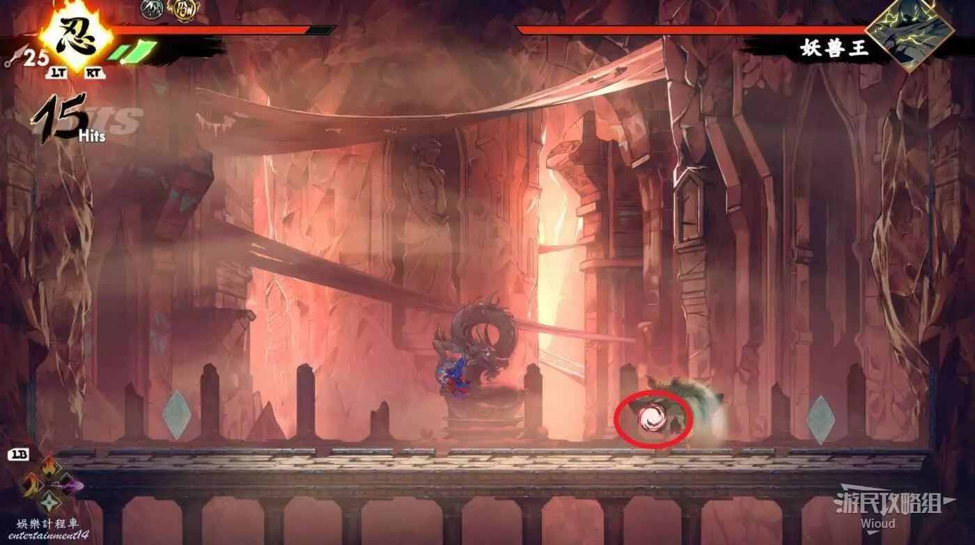 敵人會迴圈使用這兩個招式,因此我們每等敵人用完一個招式就上去輸出一套輕擊,然後跳到另外一側等敵人用完招式複讀即可。