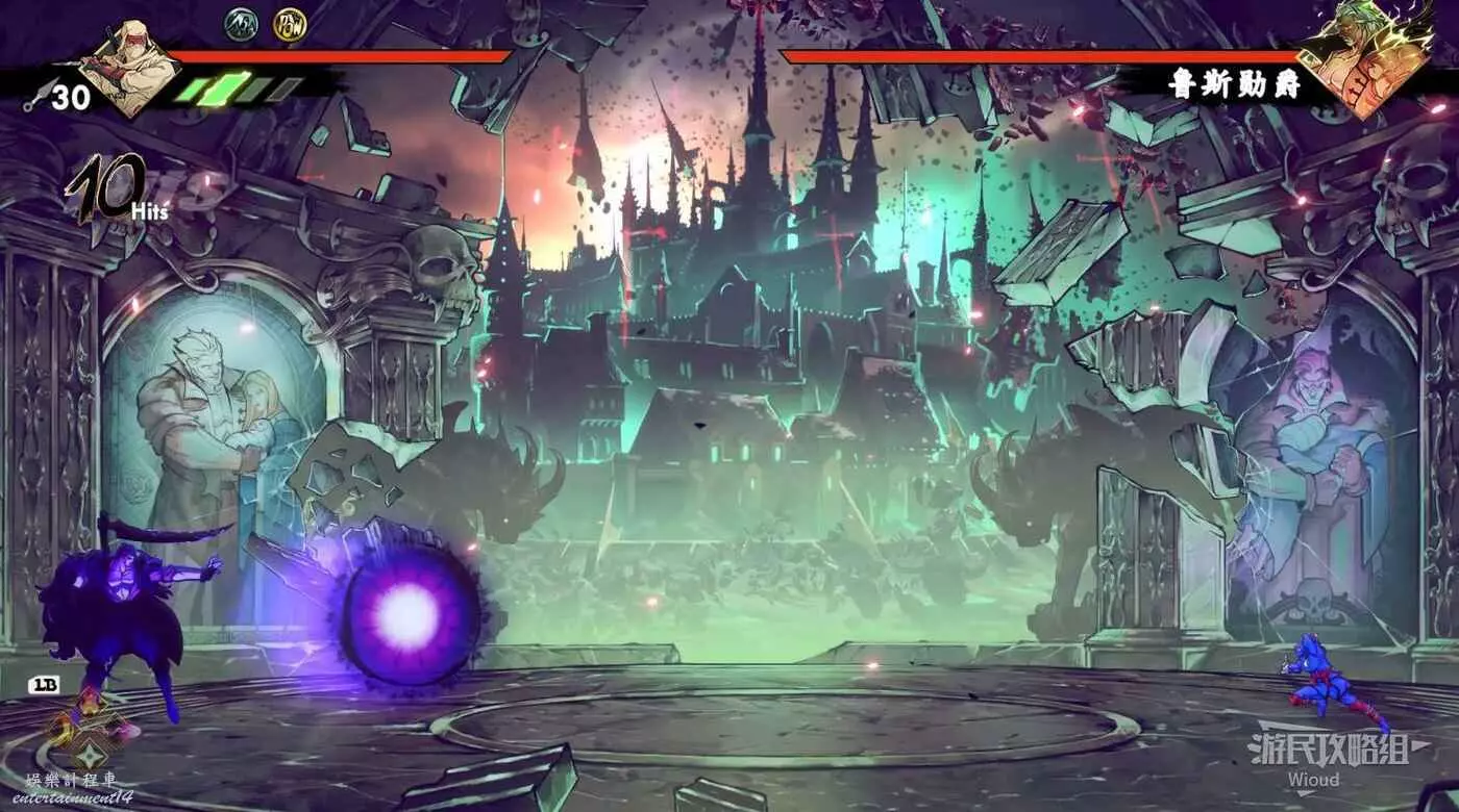 敵人半血會再次出現一個新招式,也就是無法躲避的紫色攻擊。