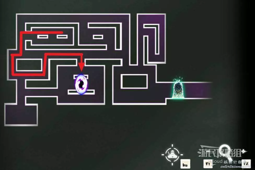 回到底層往右走,沿著下圖路線進入底部右側通道,盡頭可開啟寶箱獲得一個【朧珠】。