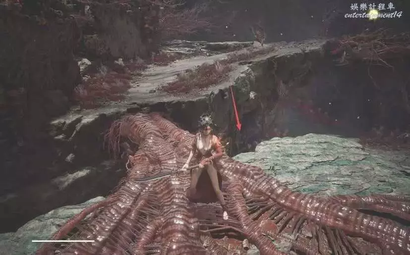 過金門,見過說書人(蜀神杜宇),繼續前進。左拐有【羽族遺骸】。直走道路盡頭直接跳。