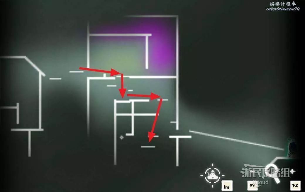 繼續往右走,進入右邊新的樓房時會發現右邊有個紫色區域,目前無法過去,直接無視。