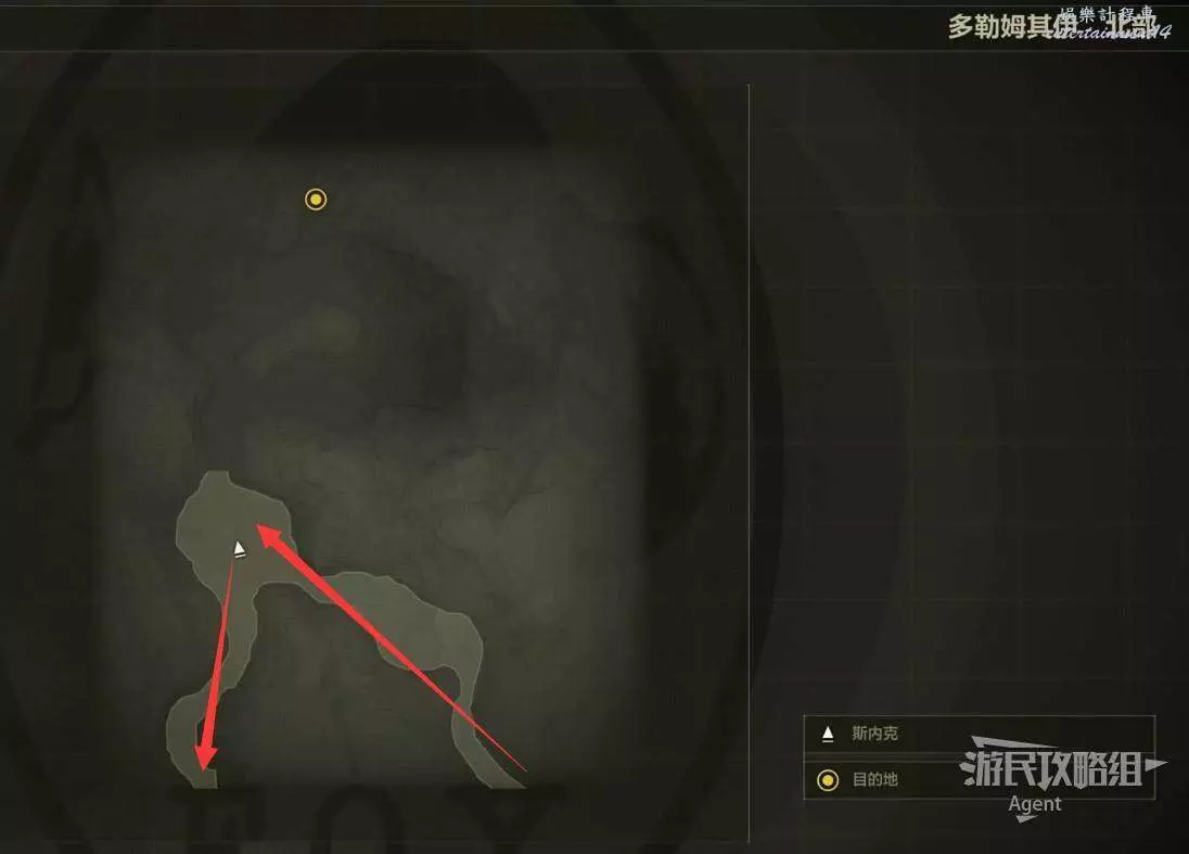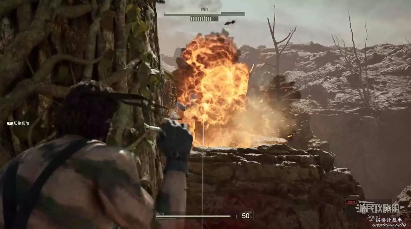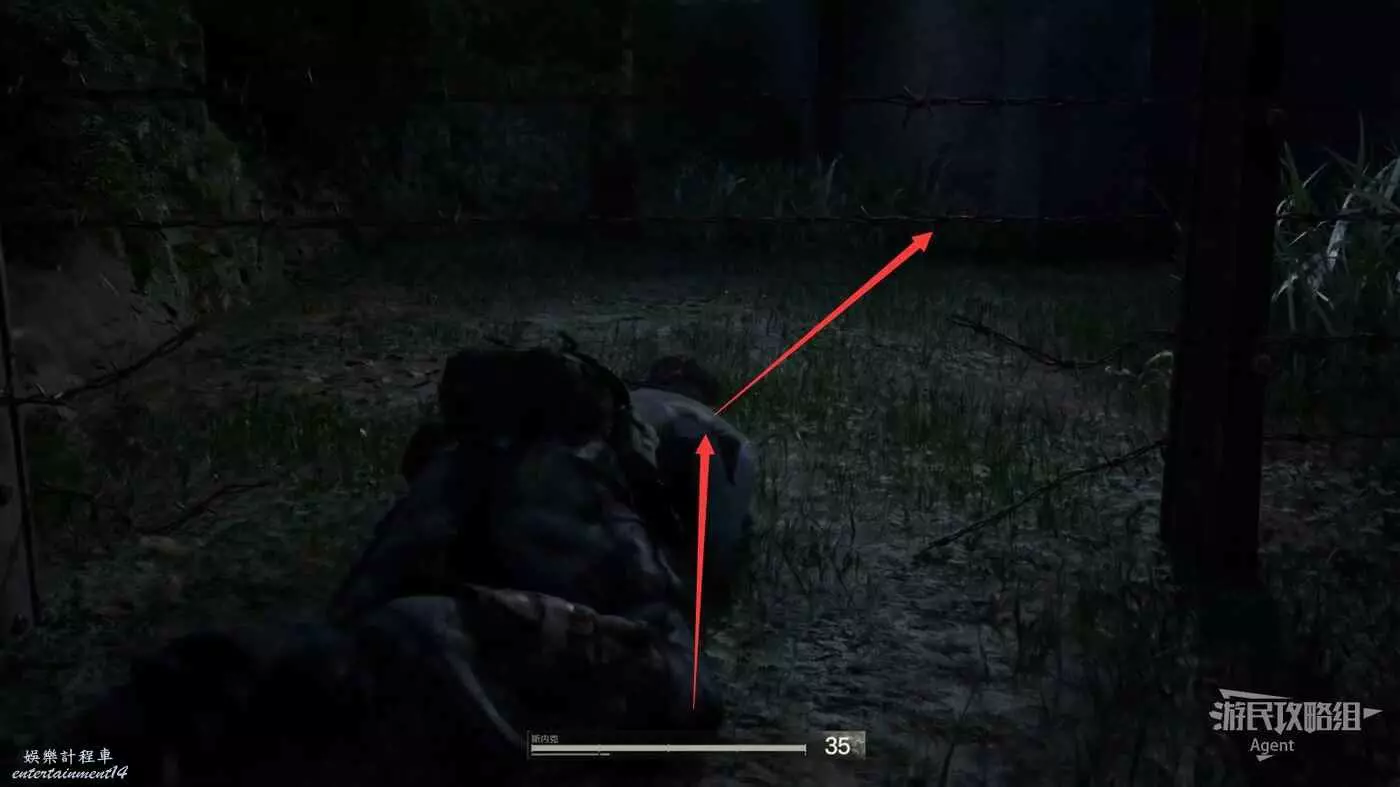 往前走遇到頭領和她的馬,劇情後先往南走,穿過鱷魚沼澤,回到遊戲最開始的懸崖邊,撿到手榴彈、眩暈手榴彈、干擾手雷。