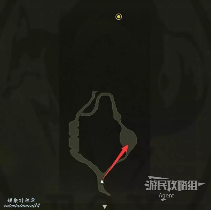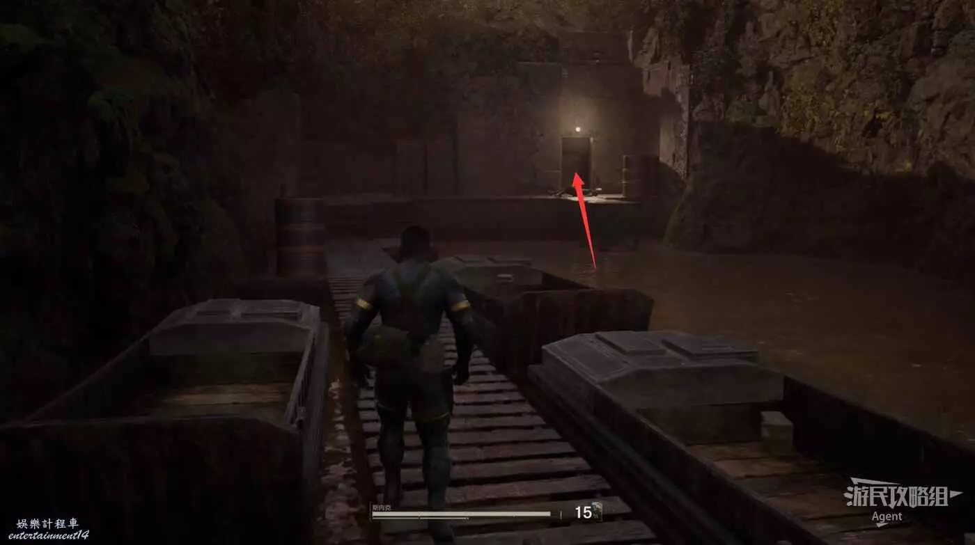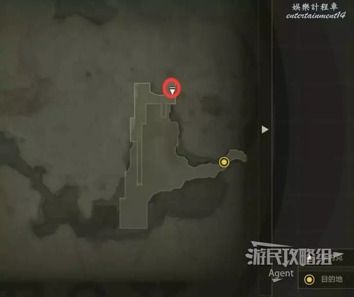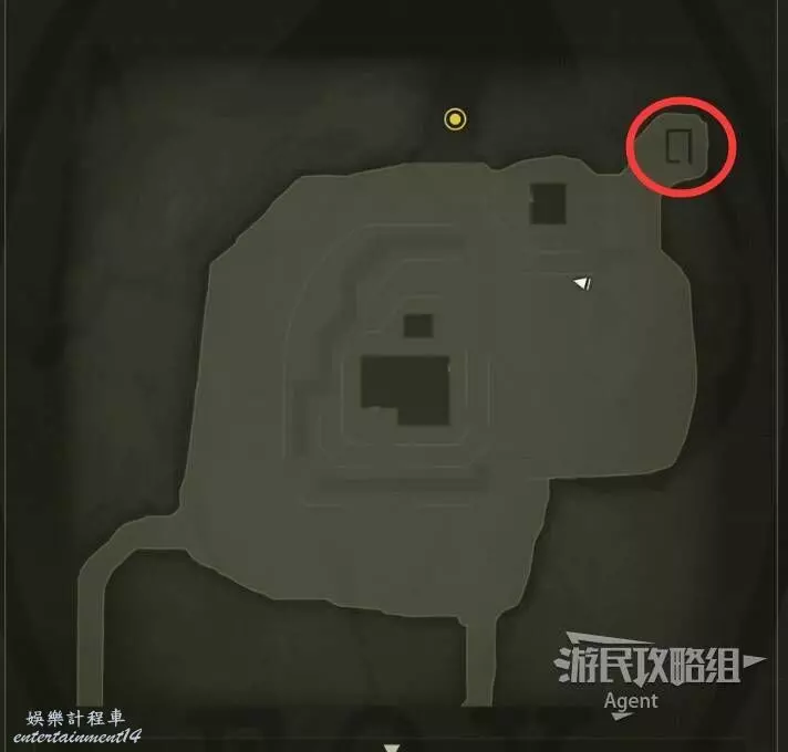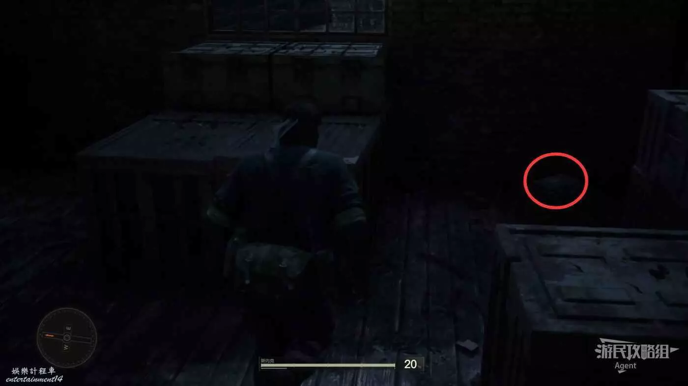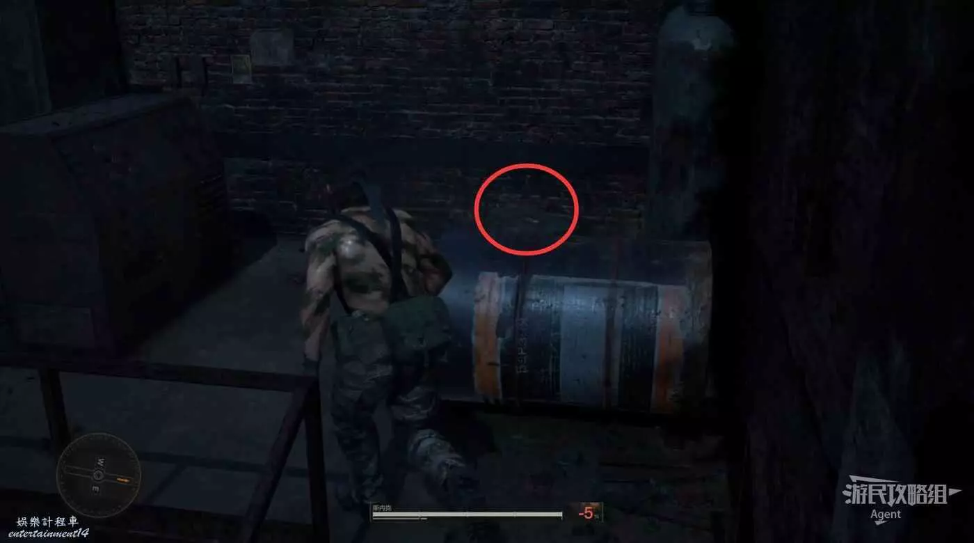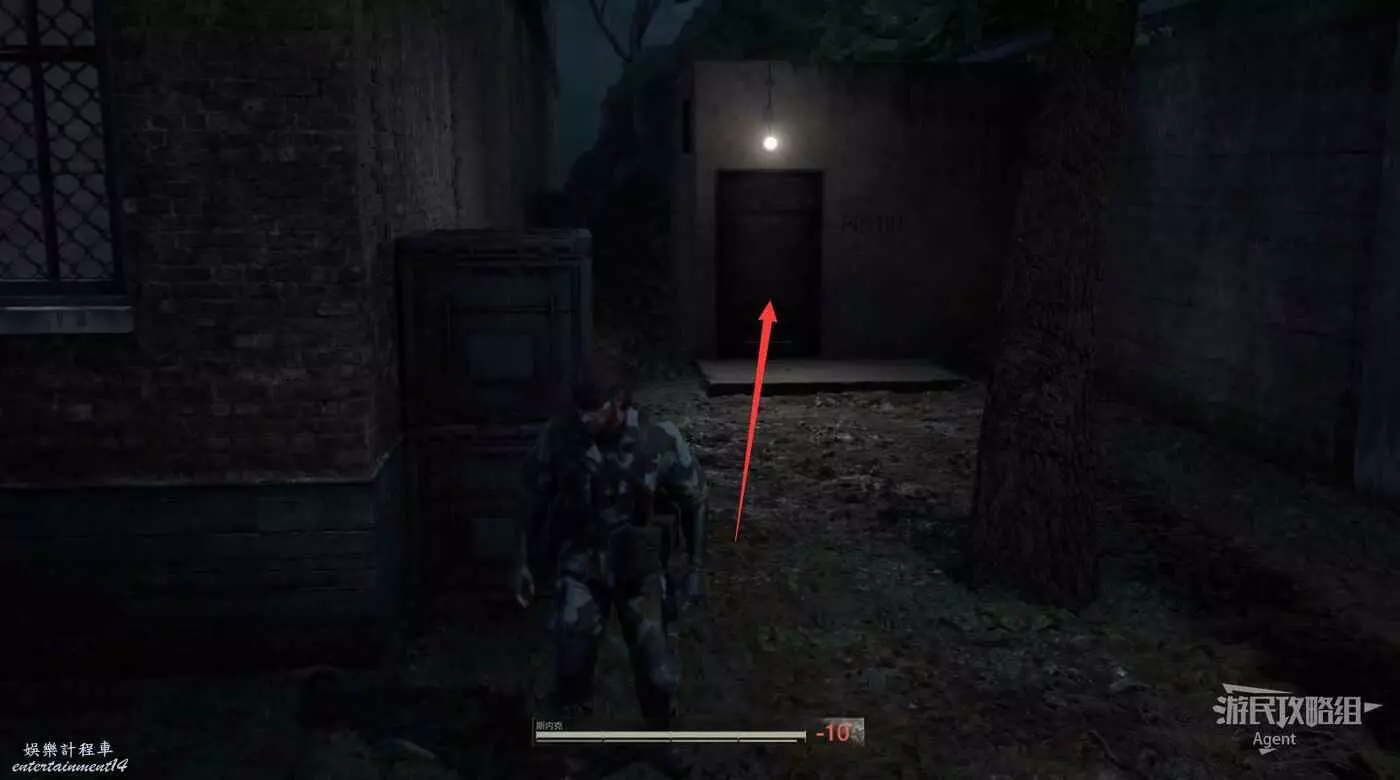 沿下圖路線,爬上右側牆壁上的梯子到房頂,從房頂的洞下去可直接抵達目的地房間觸發劇情。