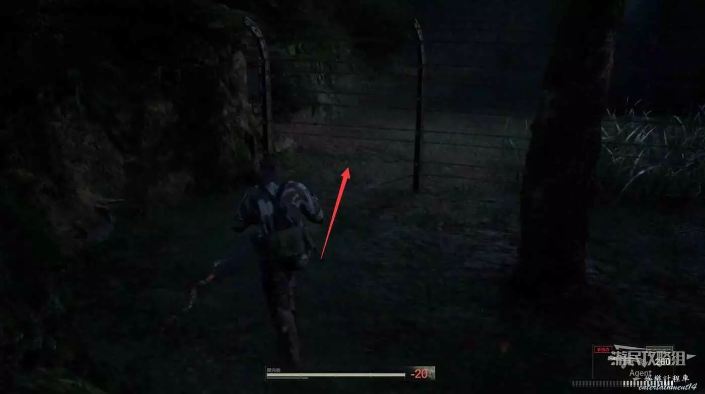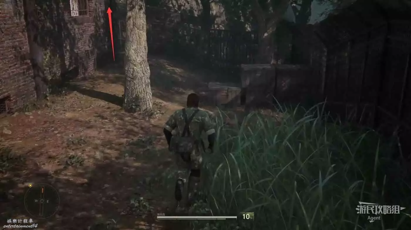 鑽過鐵絲網後,注意旁邊的牆底(院牆西側)有洞可以鑽進去。