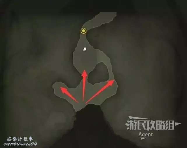 最後回到一開始的起點,沿下圖路線走,抵達北面的出口,前往主要洞穴。
