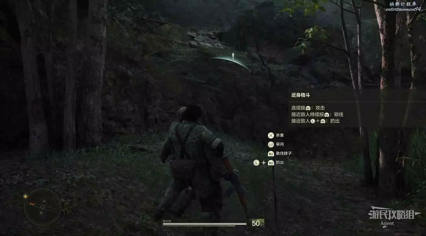 從背後抓住敵人,可以審問、擊暈。為了評價,最好別殺人。拖動敵人時可能會掉落眩暈手榴彈等物資。