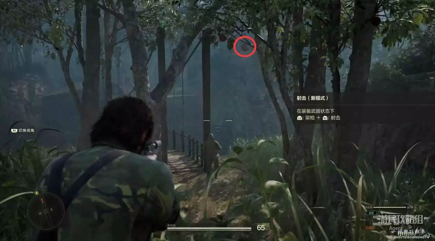 繼續往北走,來到吊橋,把樹上的蜂巢射下來,蜜蜂會幫你趕走敵人,還會掉落蜂巢等物資。