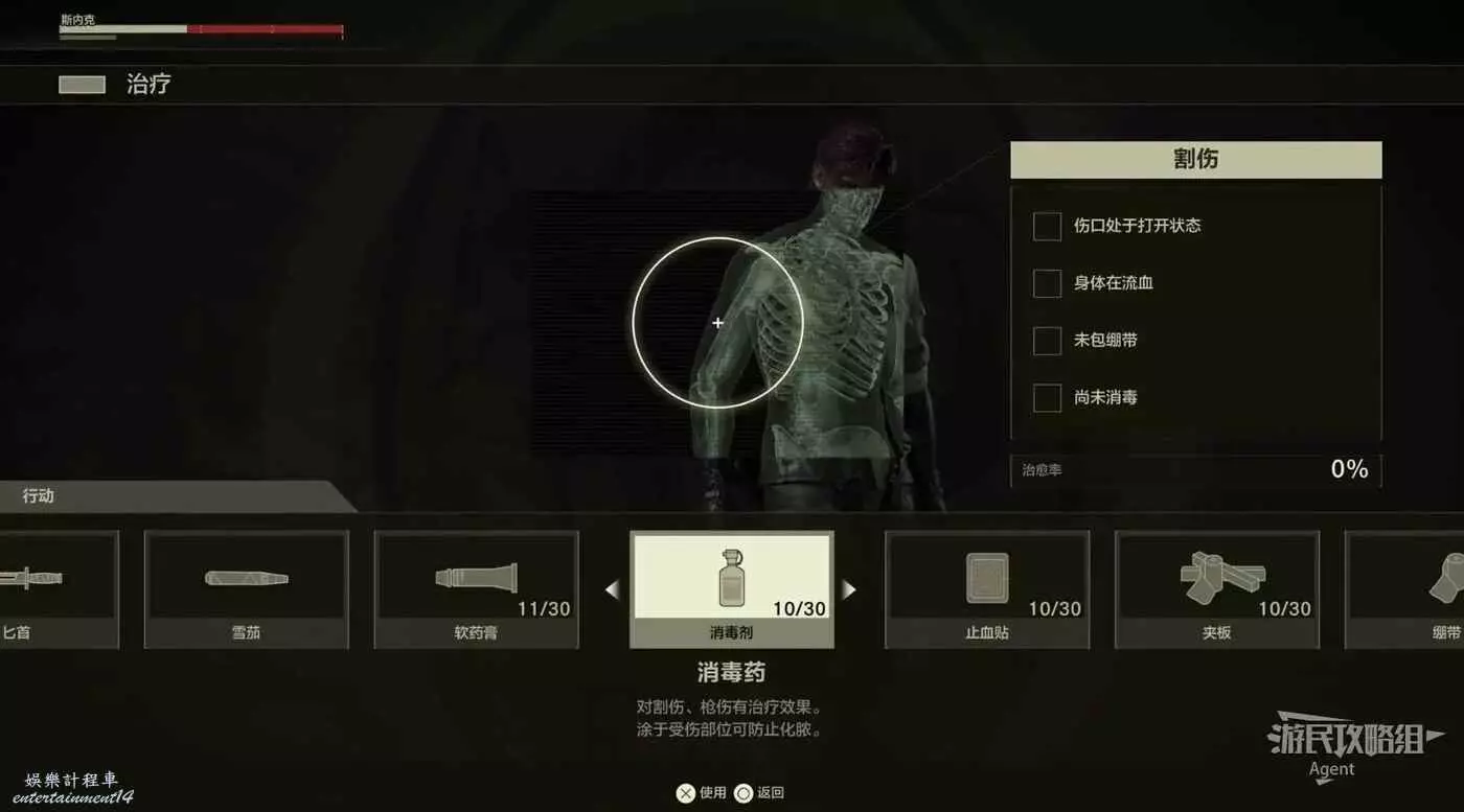 受重傷後需要治療,處理多處傷口。針對不同的傷要用不同的藥,選中所需的藥即可,不用考慮順序。