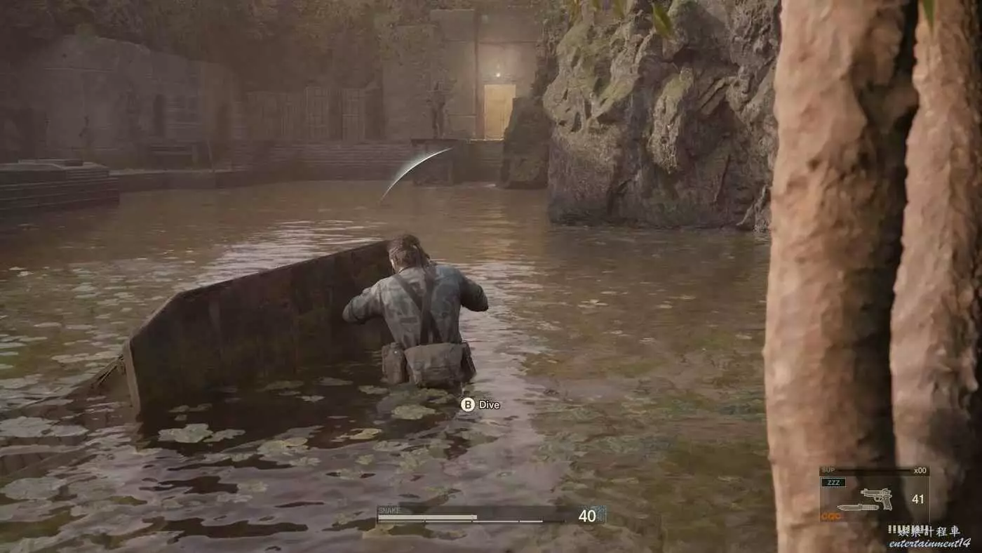 擊敗【痛苦】並離開洞穴後,來到【波尼索維埃南部】(需要穿過很長的河流),保證體力充沛後潛入水中快速往前遊,避開守衛的探照燈。
