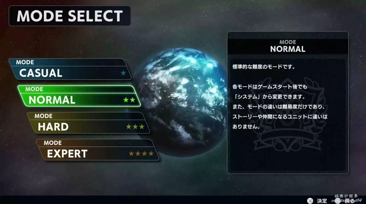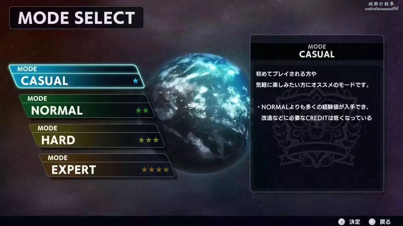 難度越低,升級所需經驗值越少。同時機體改造和技能程式的費用也大幅降低,使隊伍培養更加輕鬆。