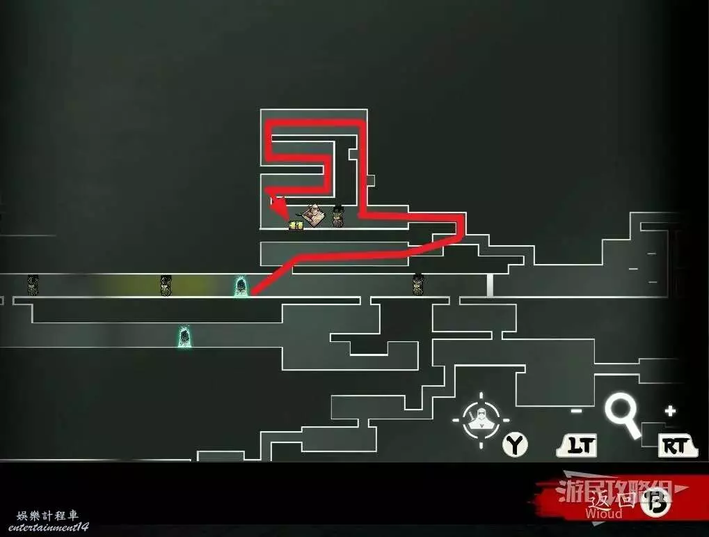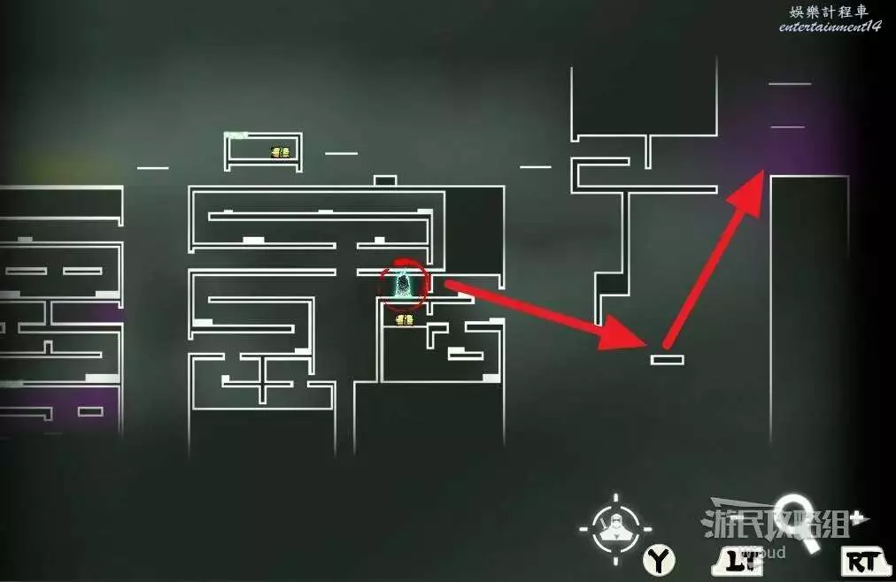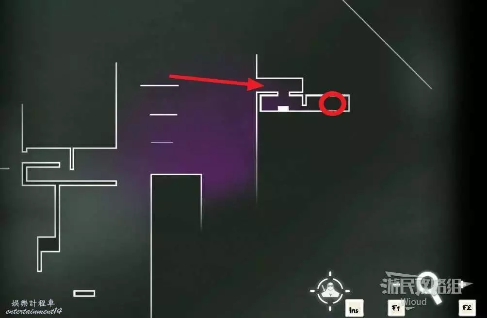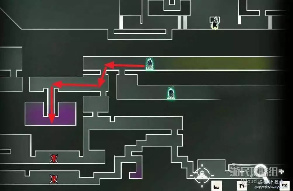 傳送到石碑【西實驗室】,沿著紅色箭頭走到紫色房間。