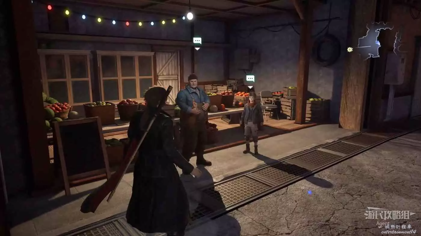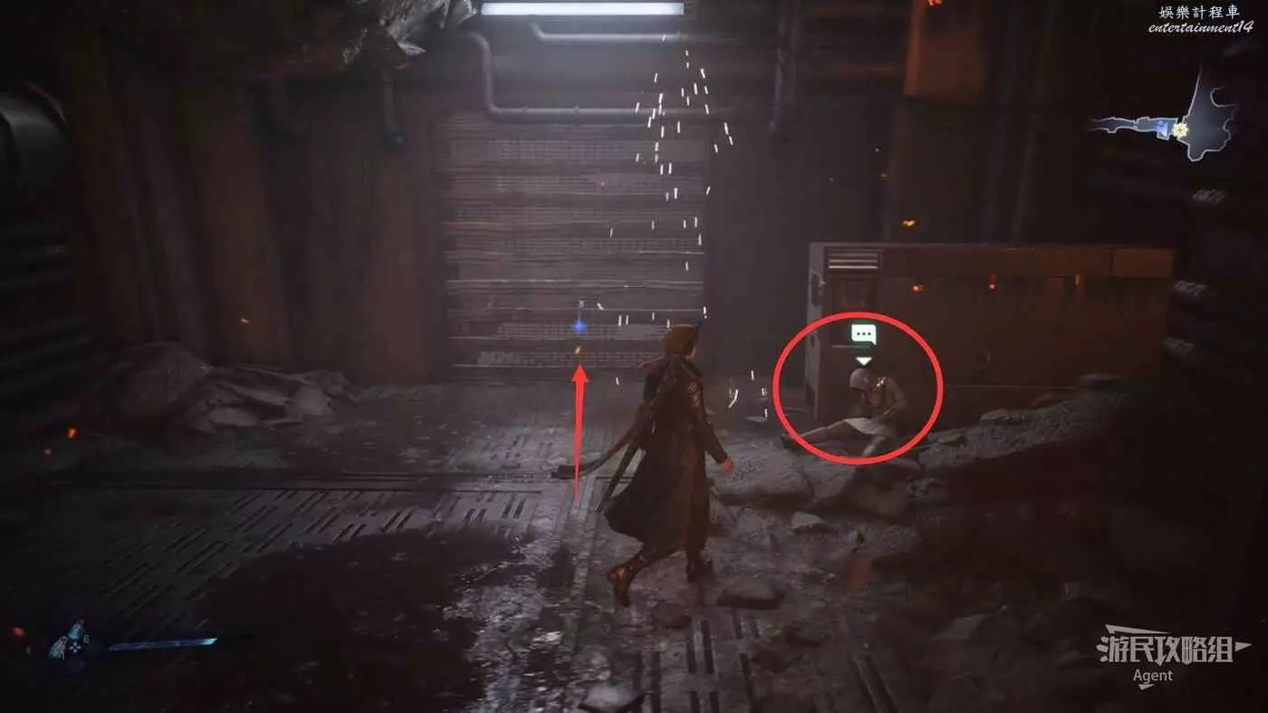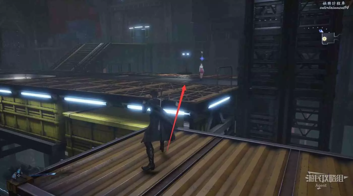 和梅姨對話後,走上階梯,到最南端乘電梯。