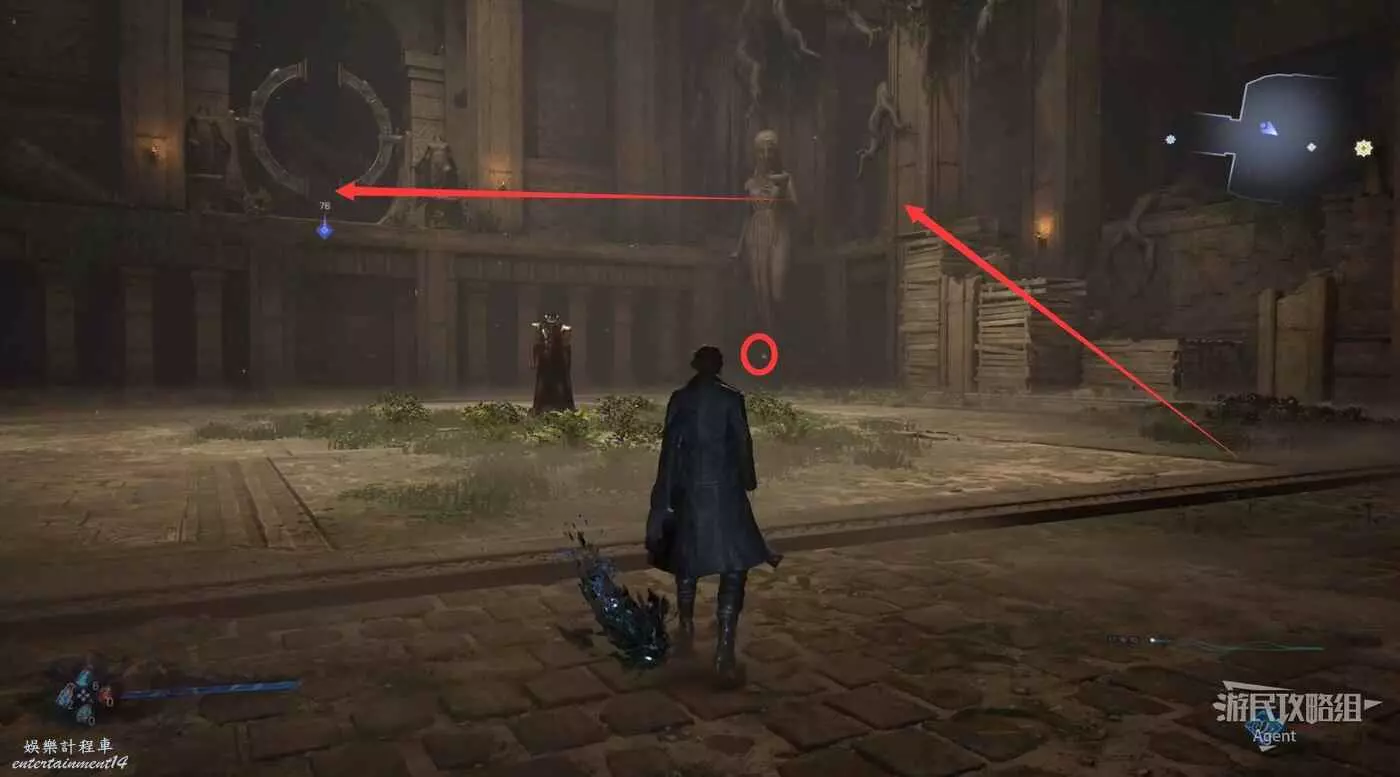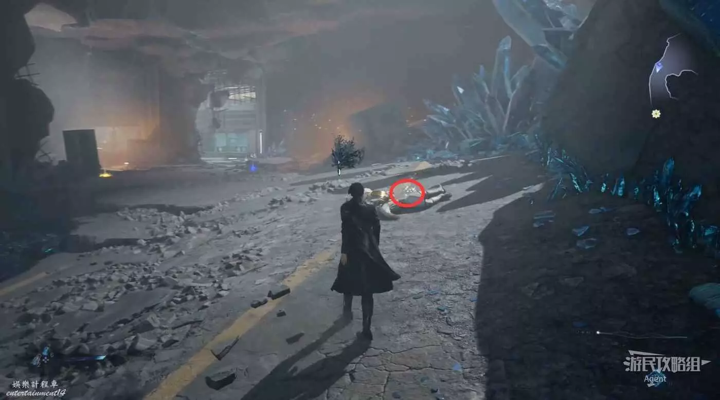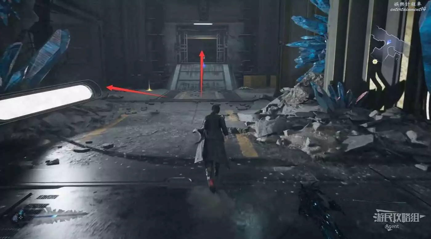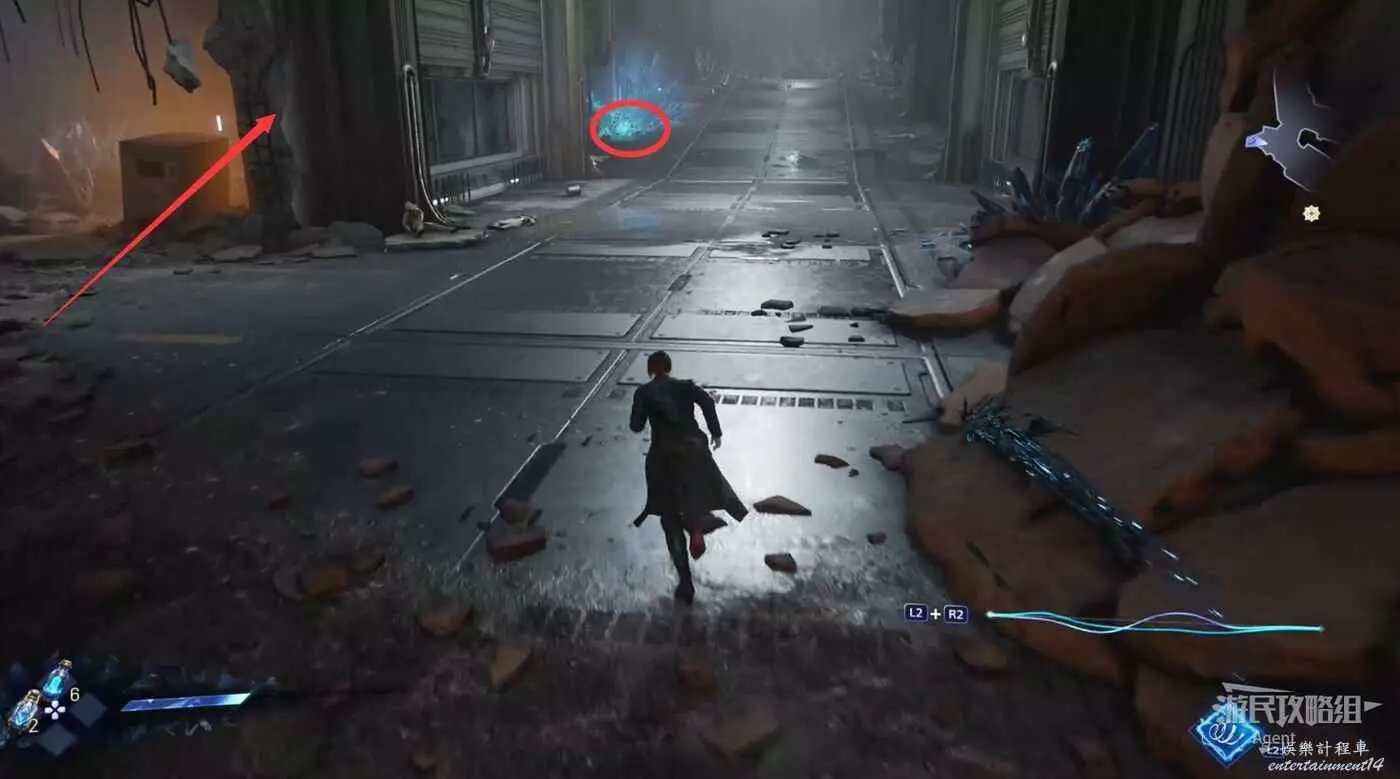 進入建築,摧毀路邊的水晶,然後去外面岔路盡頭拿寶箱。