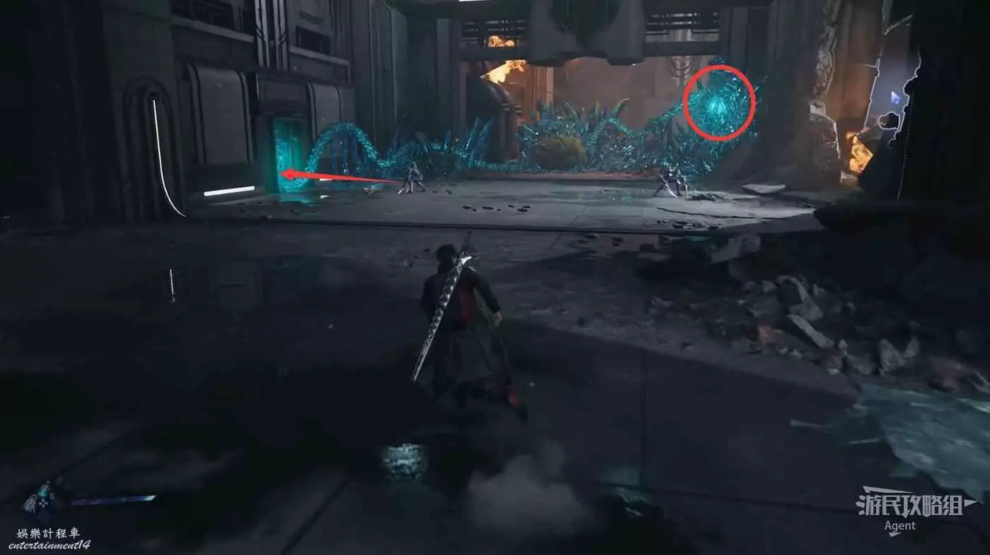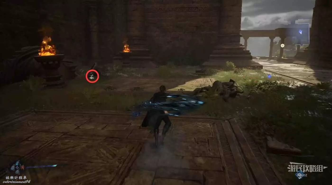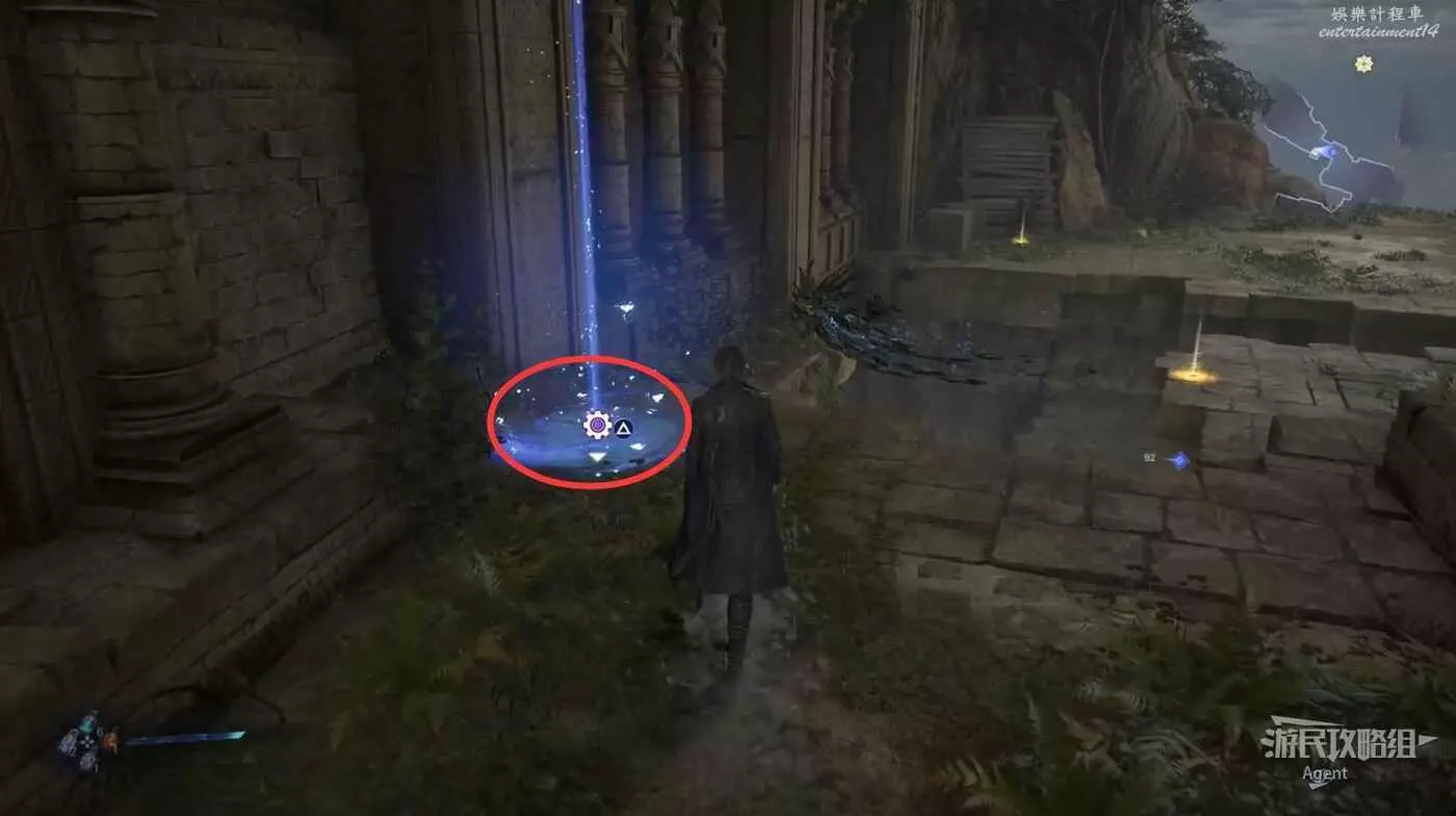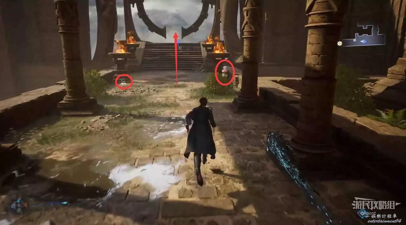 進入建築,摧毀路邊的水晶,然後去外面岔路盡頭拿寶箱。
