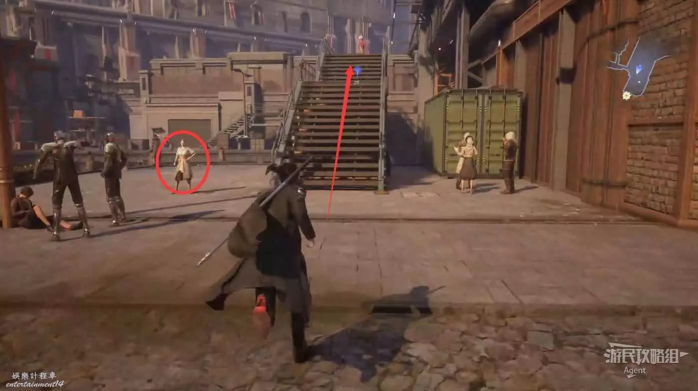 跟隨大姐澤姬,走路時注意順便探索地圖,很多地方有發金光的金幣可以拾取。不用擔心,你去別處逛的時候NPC會等你。