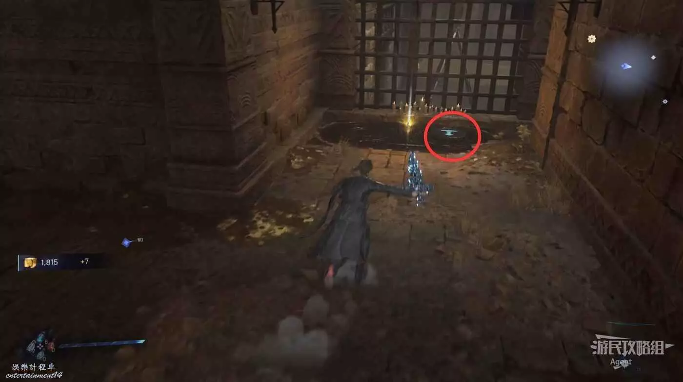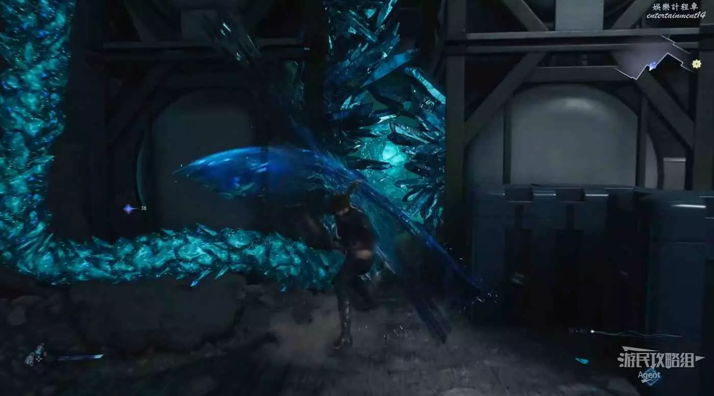 卡在裡面的水晶距離較遠,需要用重攻擊(劍氣)才能打到。