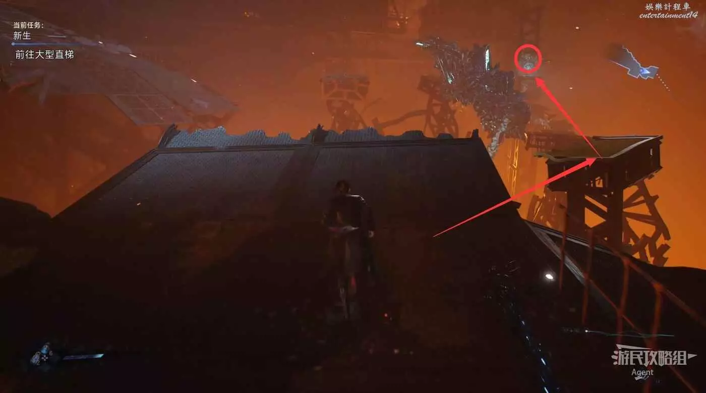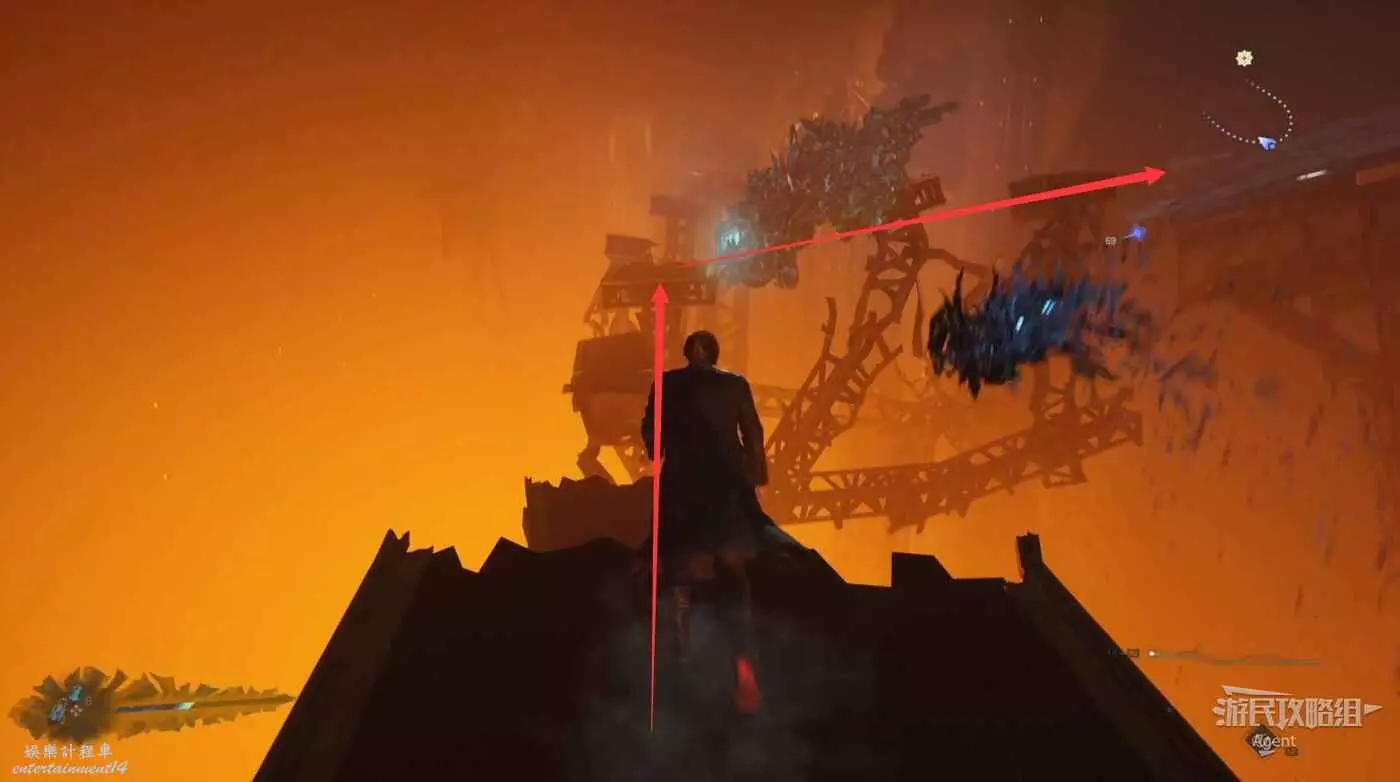 摧毀炮塔,左邊有寶箱,然後往高處走。