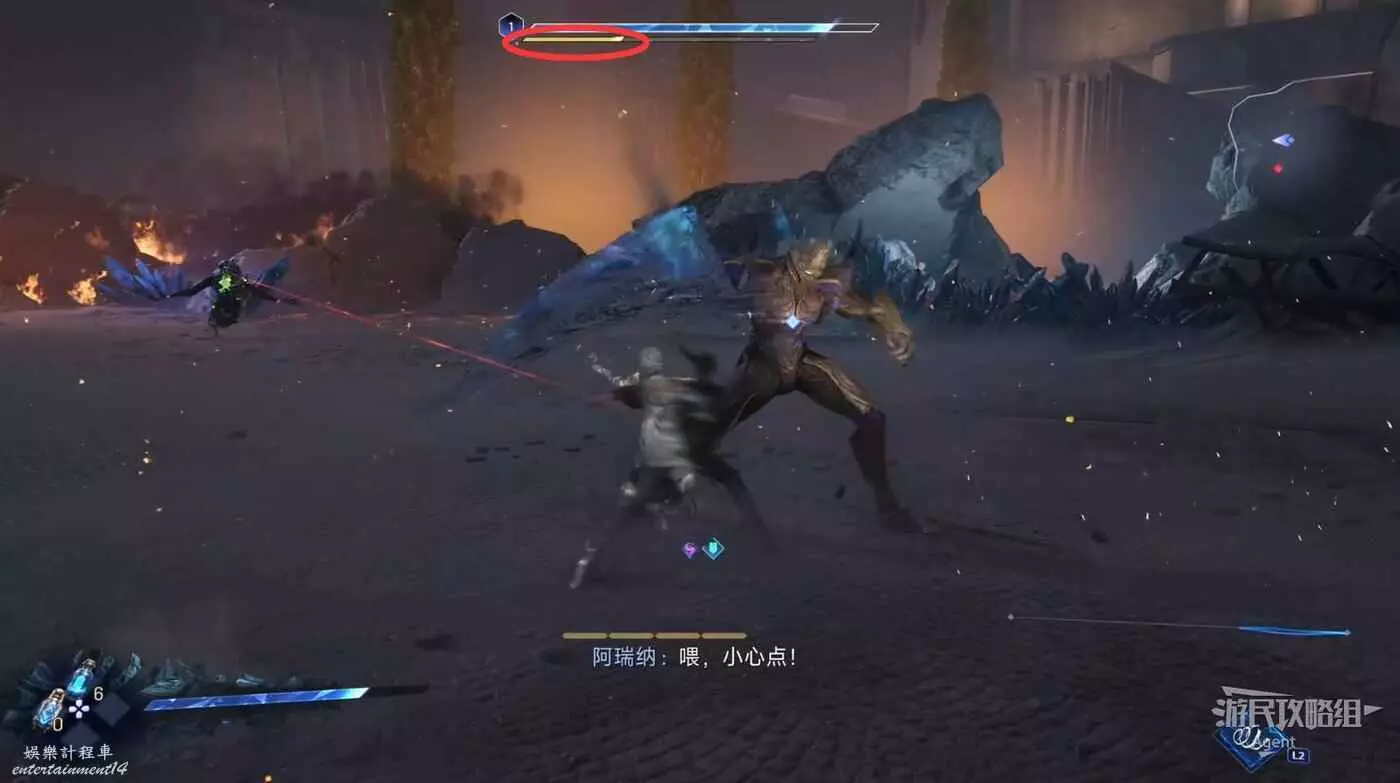 往前走遇到蓮娜,修整一下然後去打金獅將軍。注意多使用各種能力,尤其要利用好擊暈後的處決機會。