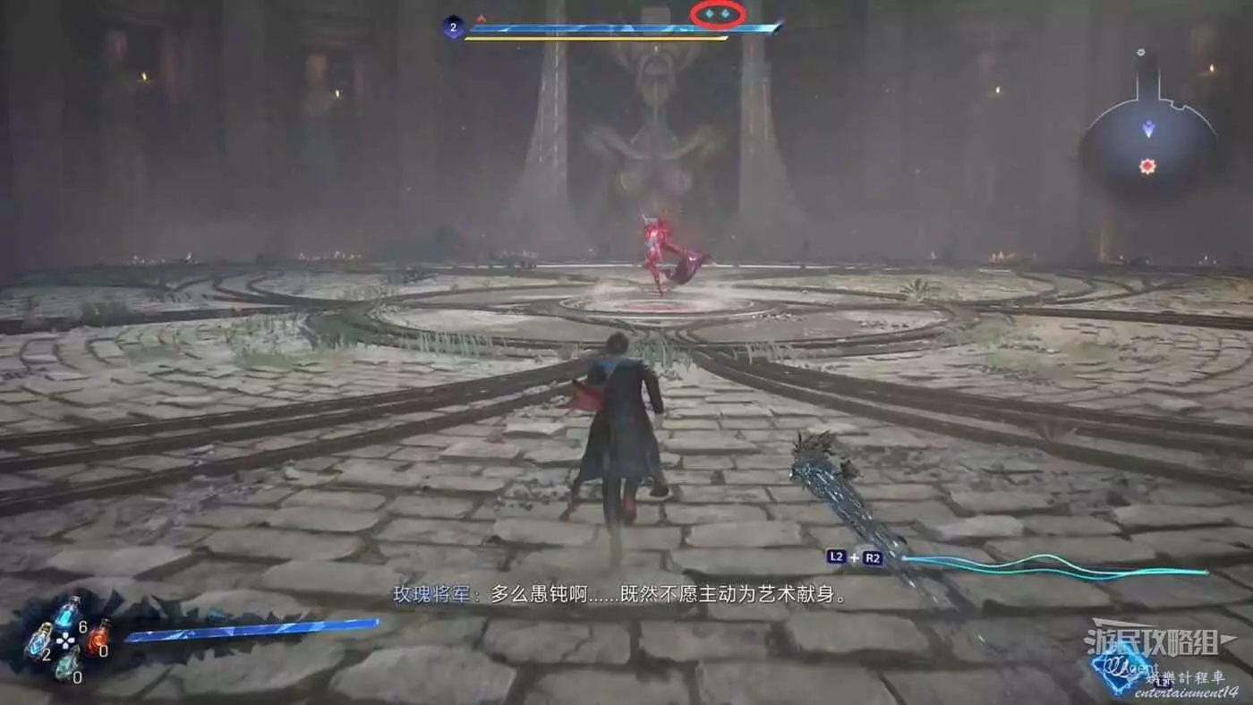 追上玫瑰將軍,注意她有三管血,到最後一管血的時候會明顯變強。如果多次戰鬥失敗,遊戲會送你特殊的飾品從而降低難度。