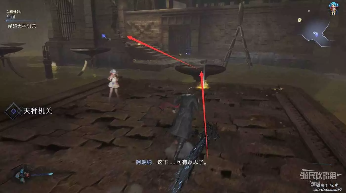 和玫瑰將軍對話後,往前走來解天秤機關謎題。