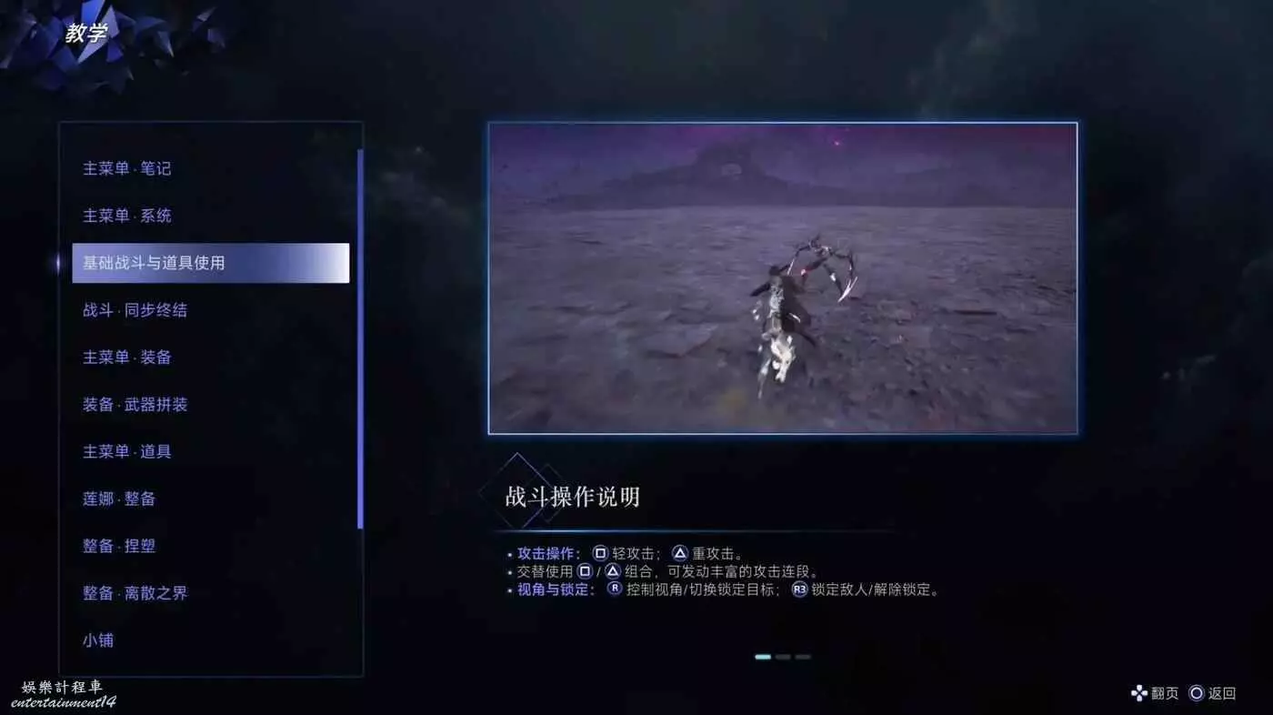 ·視角與鎖定:右搖杆控制視角/切換鎖定目標;R3鎖定敵人/解除鎖定。