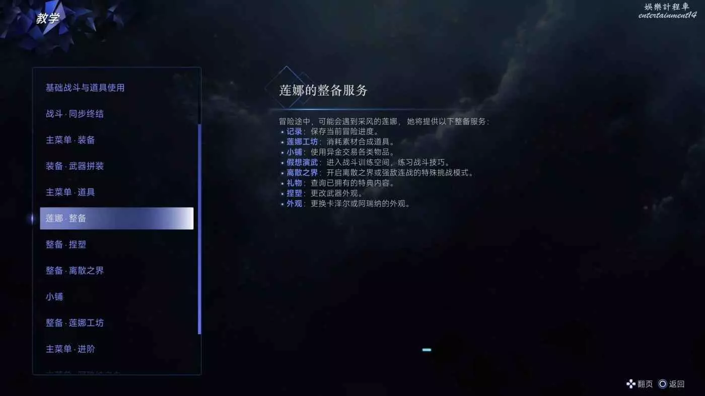 冒險途中,可能會遇到采風的蓮娜,她將提供以下整備服務: