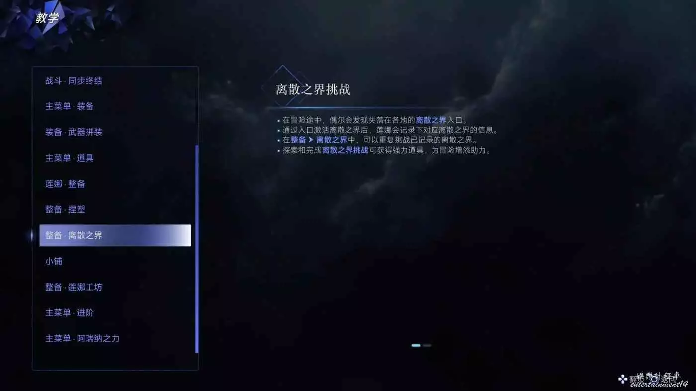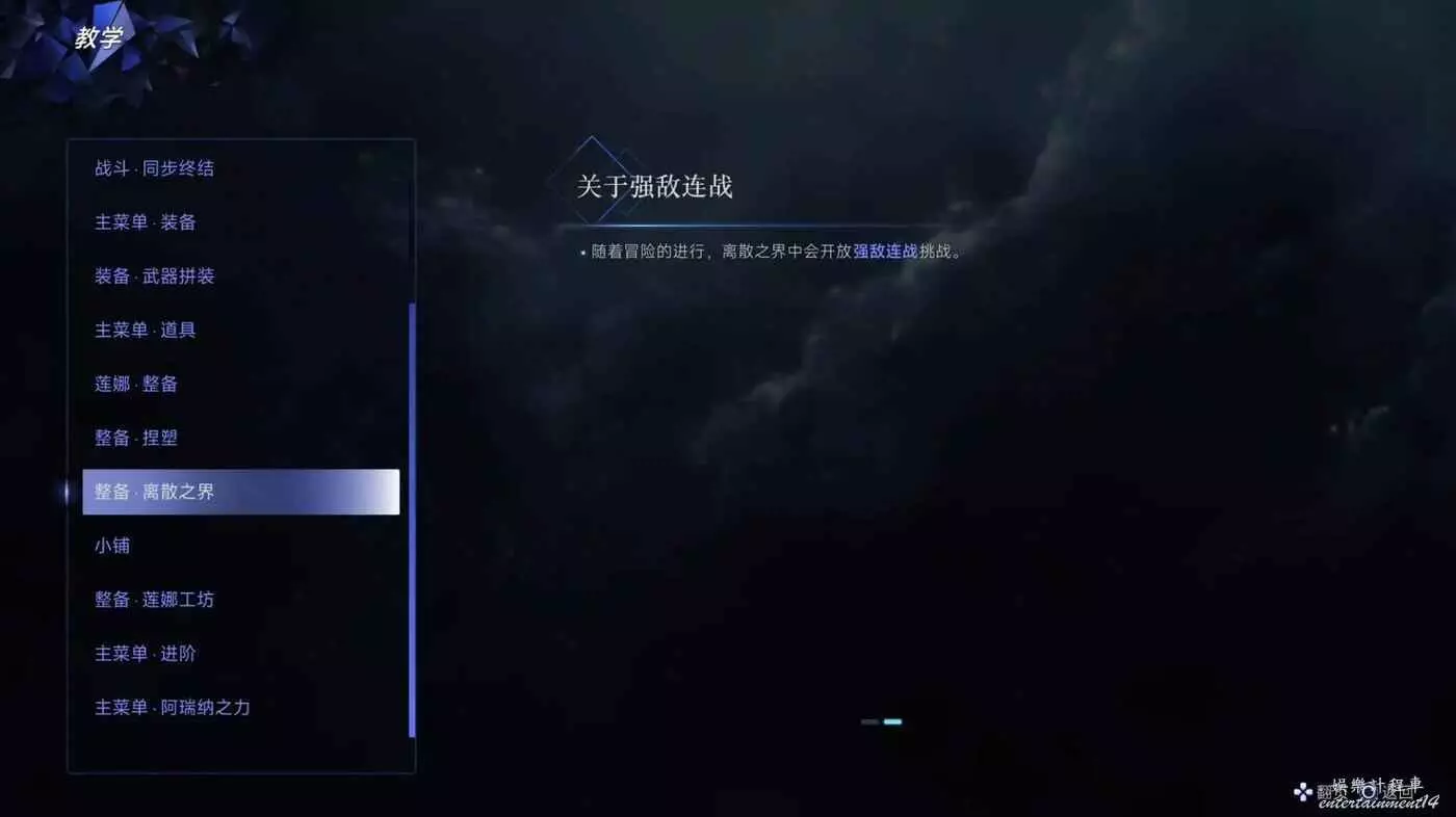 ·離散之界:開啟離散之界或強敵連戰的特殊挑戰模式。