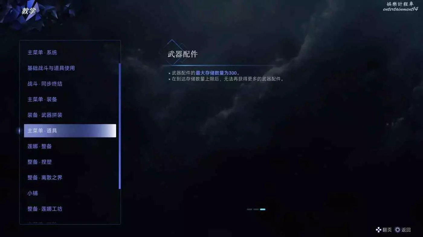 ·在到達儲存數量上限後,無法再獲得更多的武器配件。