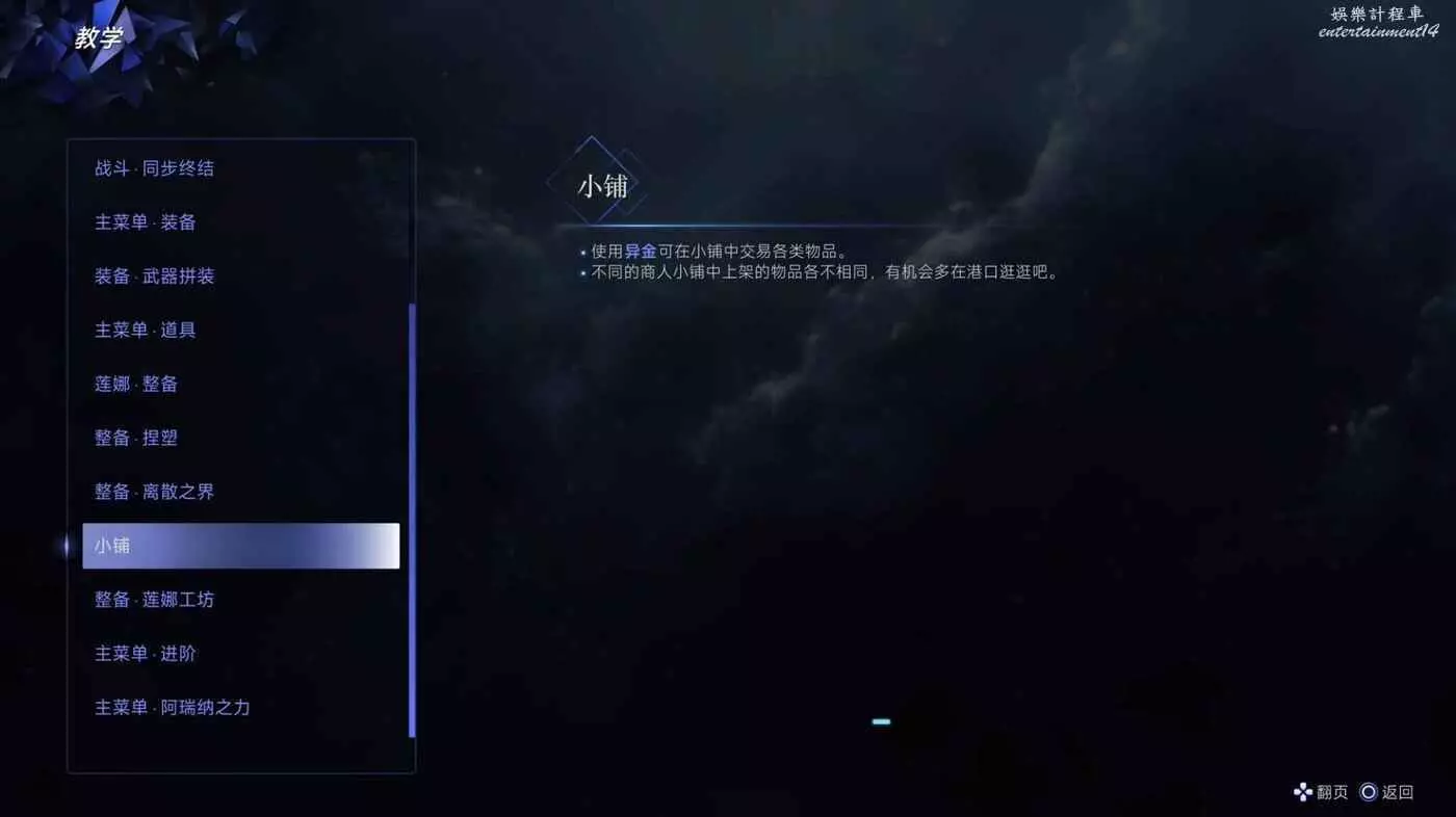 ·使用異金可在小鋪中交易各類物品。