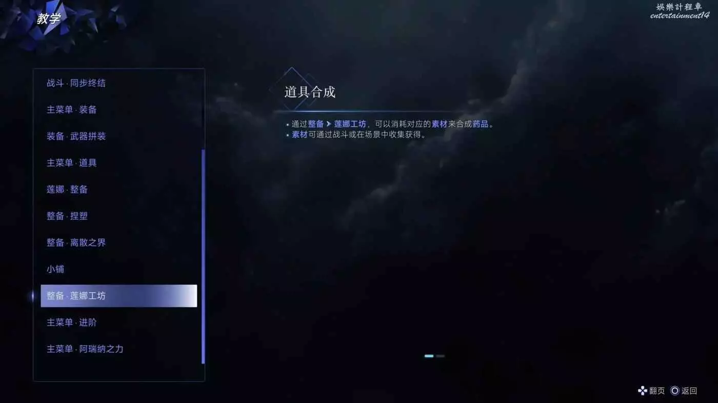 ·蓮娜工坊:消耗素材合成道具。