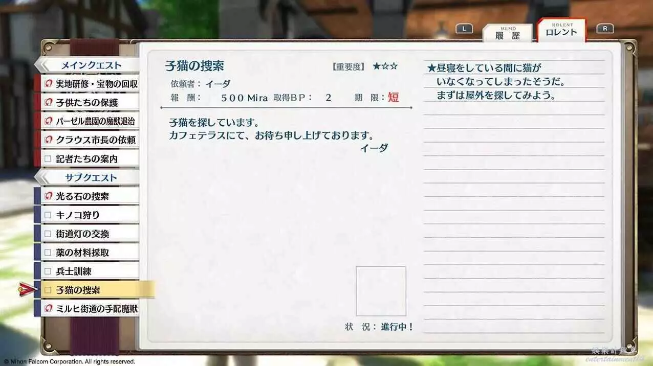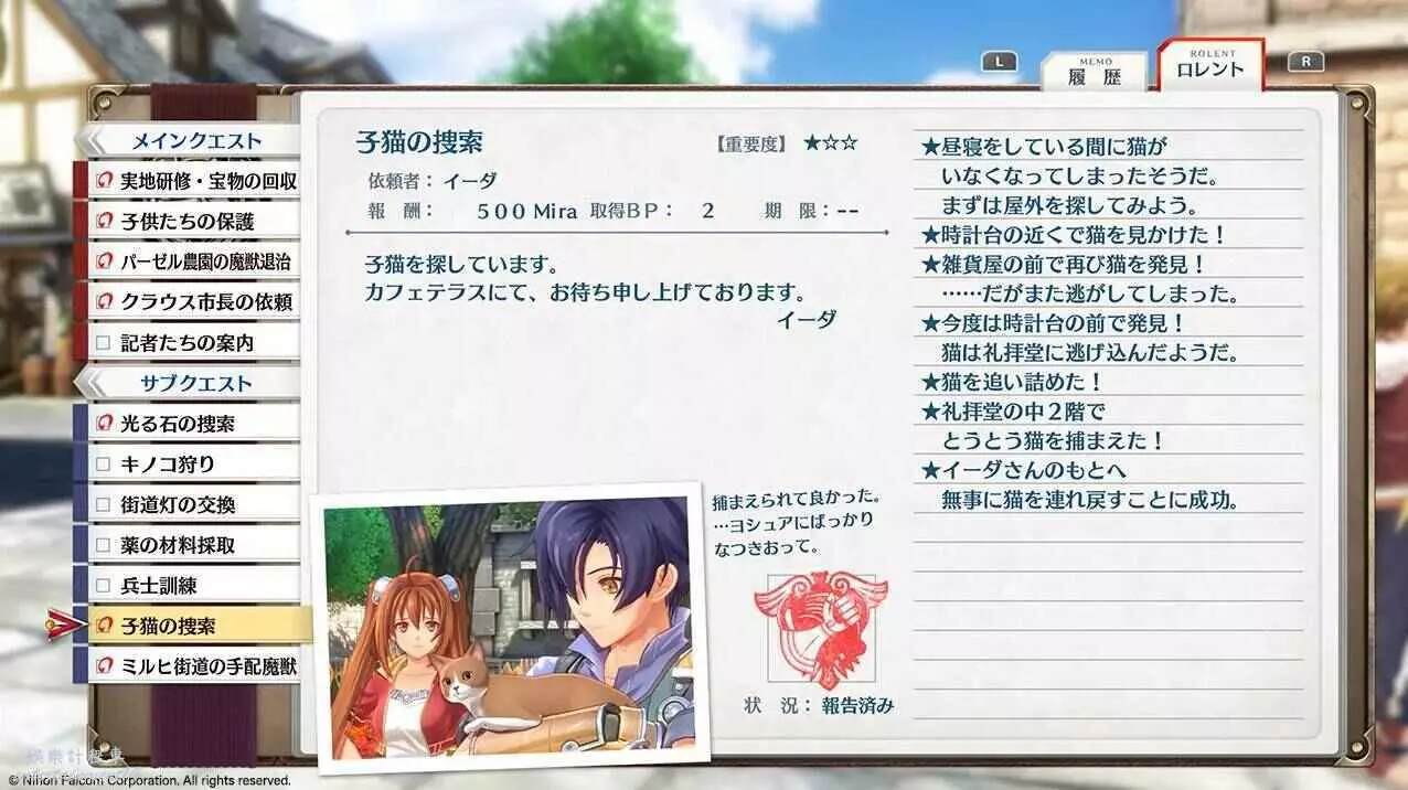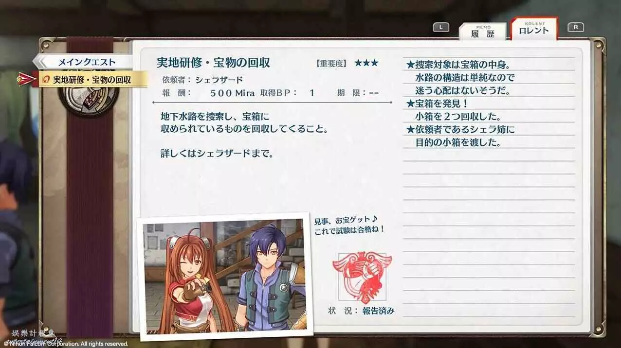 遊擊士手冊會記錄在公告板確認過的委託詳情,以及推進故事的重要事件。
