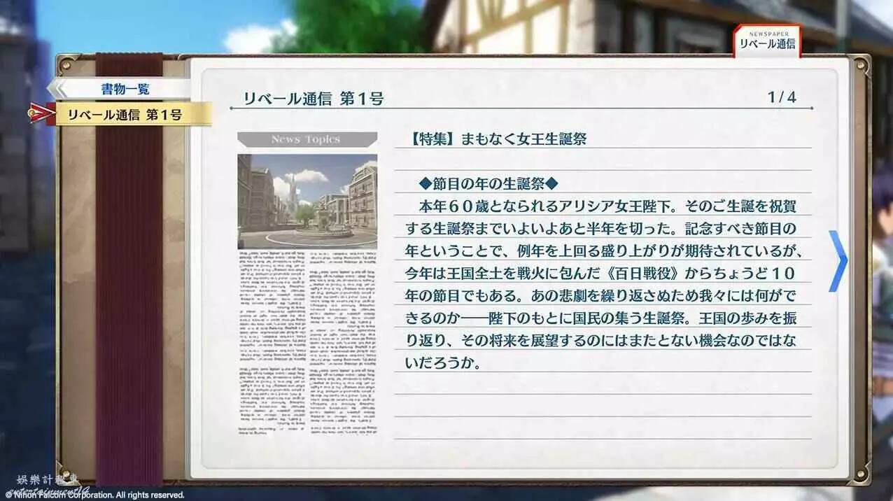可通過手冊閱讀於遊戲內獲得的“利貝爾通訊”或小說等書籍的內容。