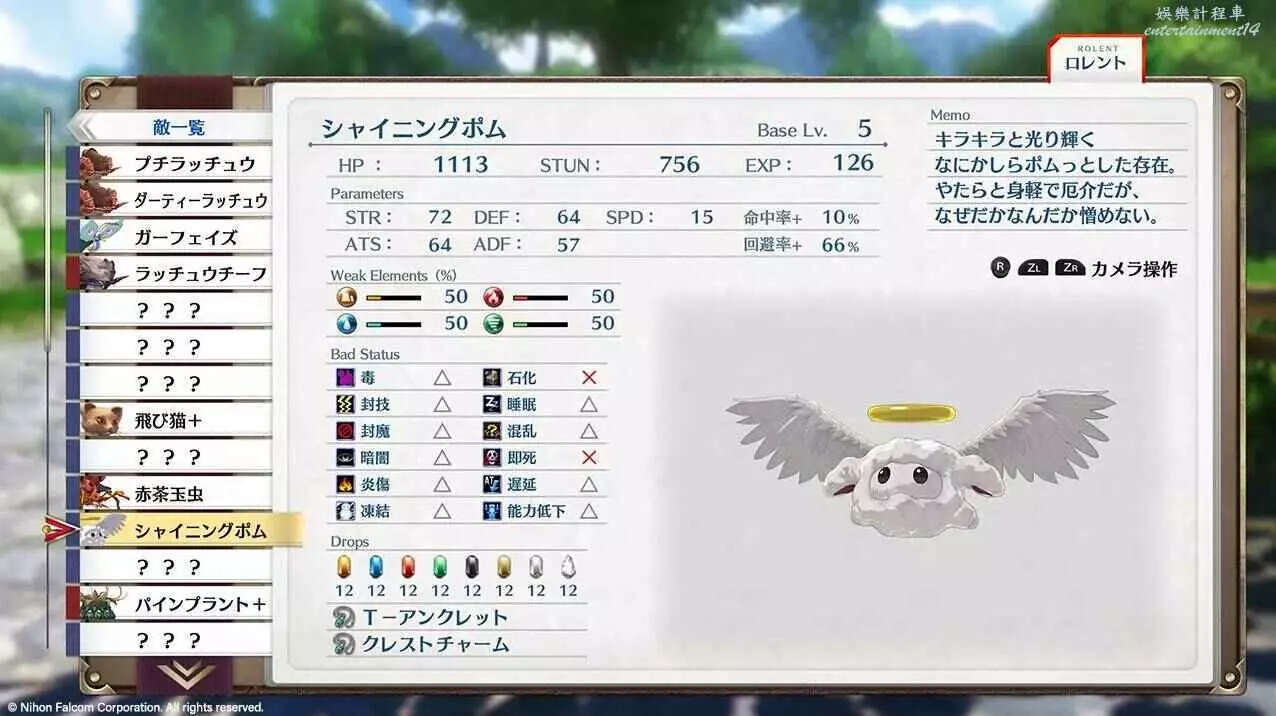 除了敵人的基本能力值、弱點屬性外,也會記錄掉落道具,活用手冊可讓戰鬥更加有利!