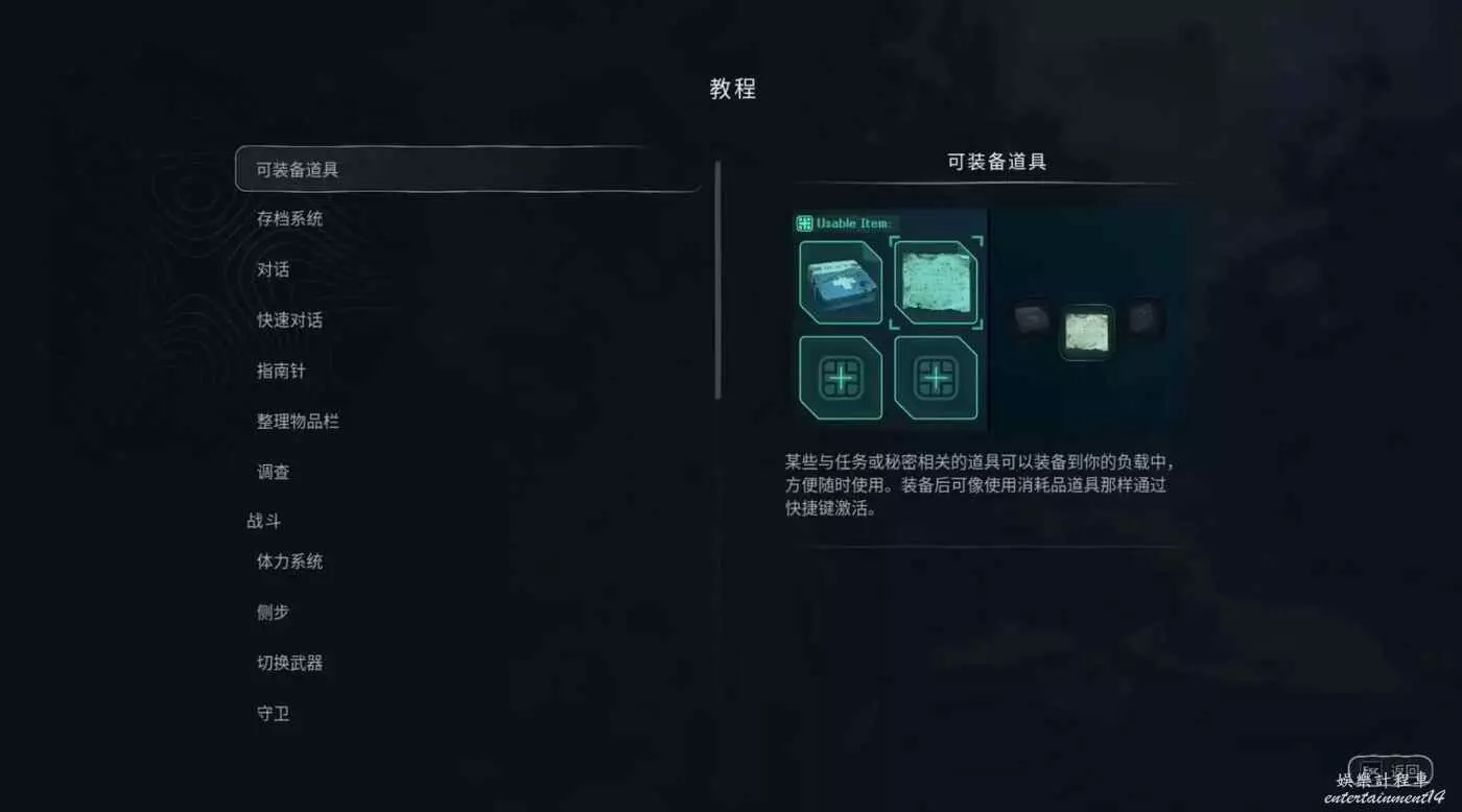 某些與任務或秘密相關的道具可以裝備到你的負載中,方便隨時使用。裝備後可像使用消耗品道具那樣通過快速鍵啟動。