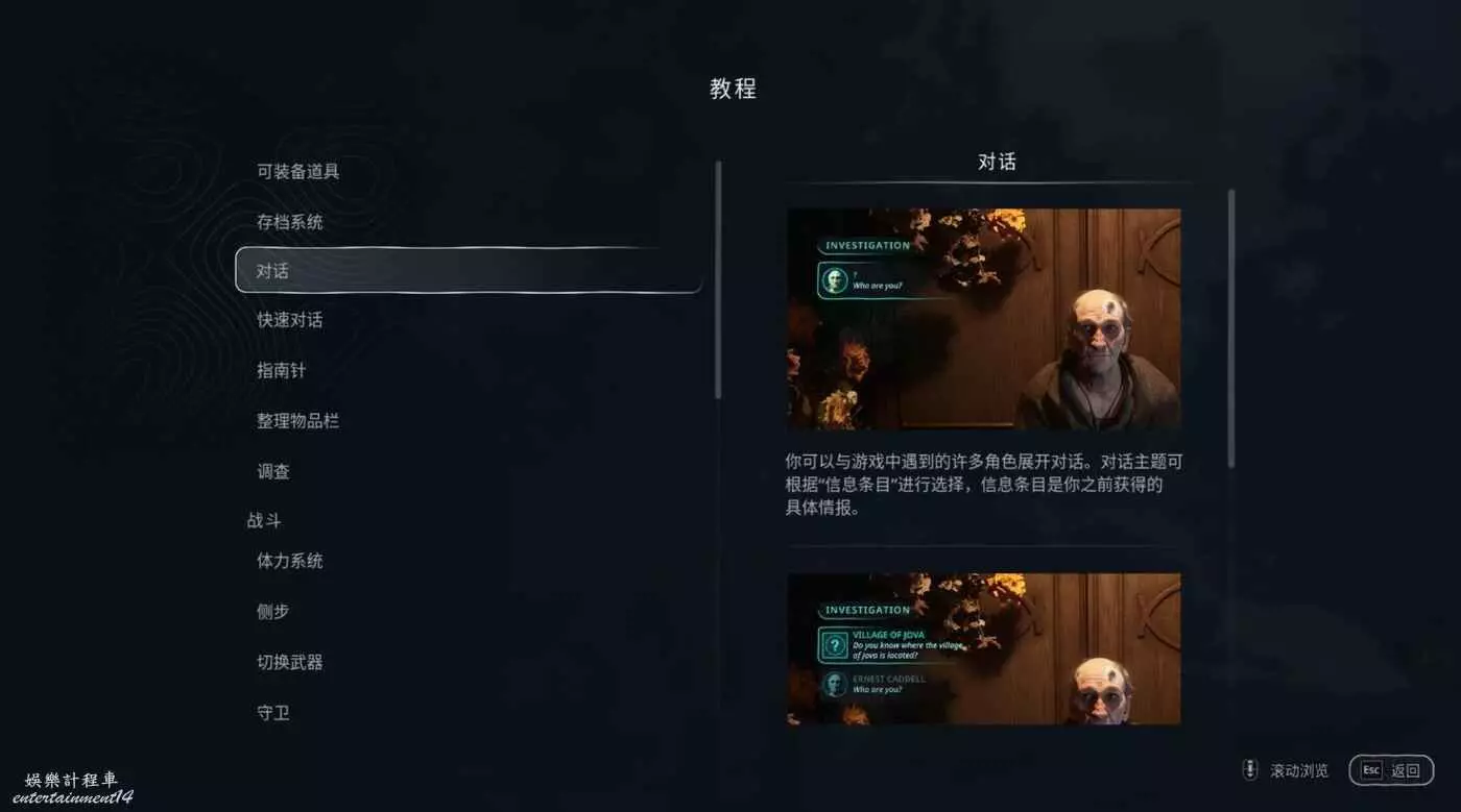 你可以與遊戲中遇到的許多角色展開對話。對話主題可根據“資訊條目”進行選擇,資訊條目是你之前獲得的具體情報。