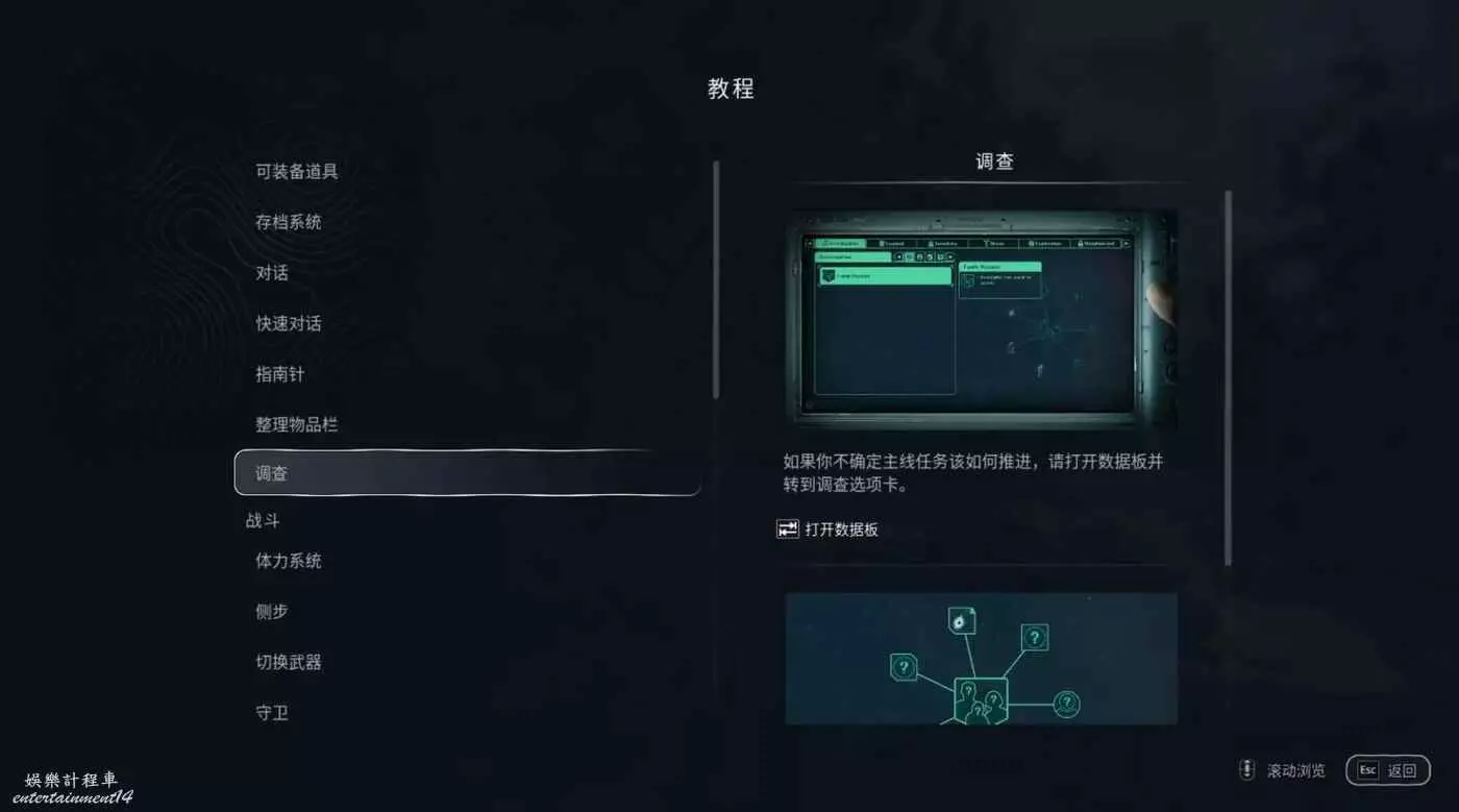如果你不確定主線任務該如何推進,請打開資料板並轉到調查選項卡。
