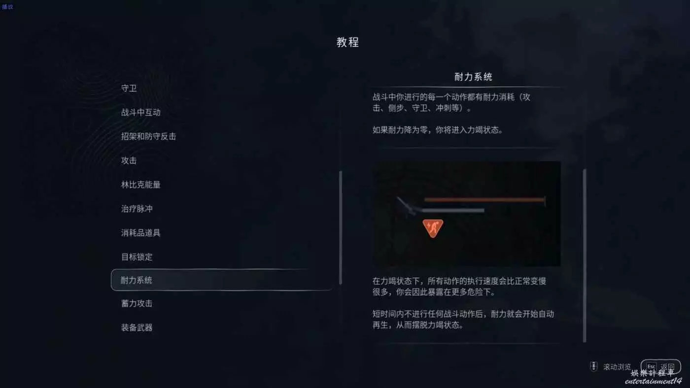 短時間內不進行任何戰鬥動作後,耐力就會開始自動再生,從而擺脫力竭狀態。