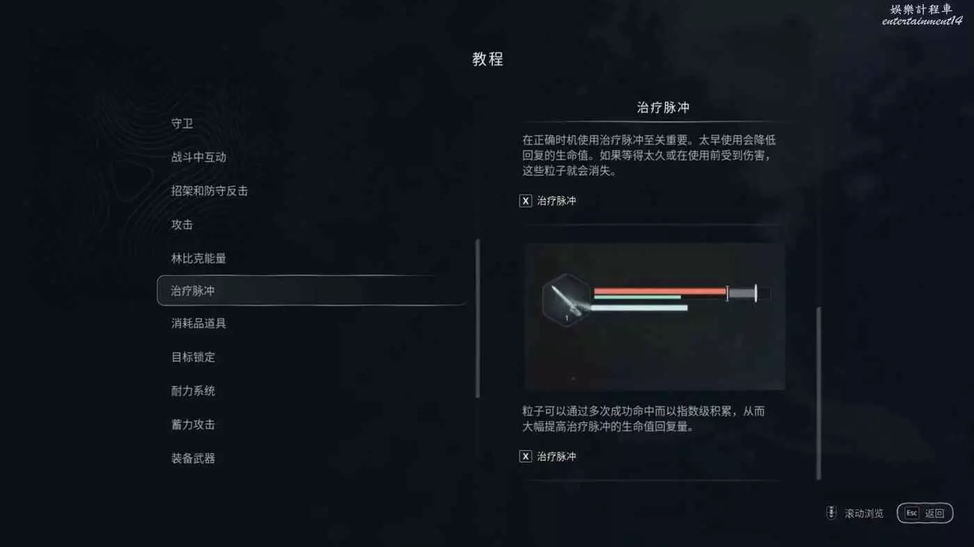 在正確時機使用治療脈衝至關重要。太早使用會降低恢復的生命值。如果等得太久或在使用前受到傷害,這些粒子就會消失。