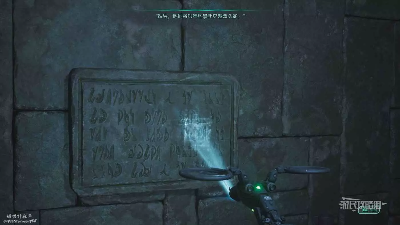 Hell is Us (地獄即我們) 森林遺跡半圓門位置及正確密碼 2 9 月 2025-09-02 廣告 作者:瑞破受氣包 來源:遊民星空 地下遺跡內半圓門 位置:塞內德拉森林 調查:家庭團聚 獎勵:解鎖地下遺跡內下個區域 正確答案:塔-蛇-火(從上到下,從內圈到外圈) 謎題解法 進入地下遺跡並解鎖戰鬥能力和無人機後,擊敗第一名敵人,在快到手動存檔點之前可以看到這個半圓密碼門。 密碼的線索在半圓密碼門之前的岔路區域中的石板上,石板下方會有一個金色閃光標記,用無人機讀取石板上的文字即可獲得線索。