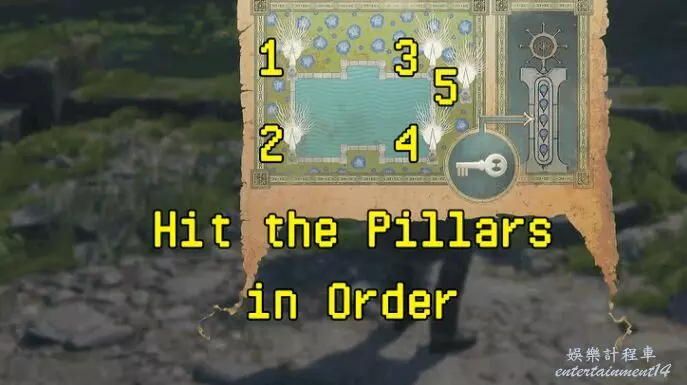 按照以下順序敲擊石柱(使用近戰武器或互動鍵):