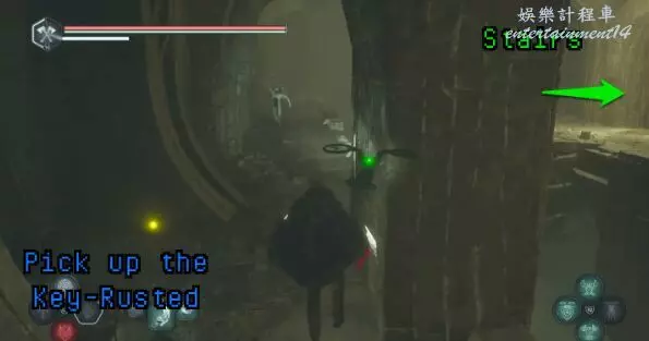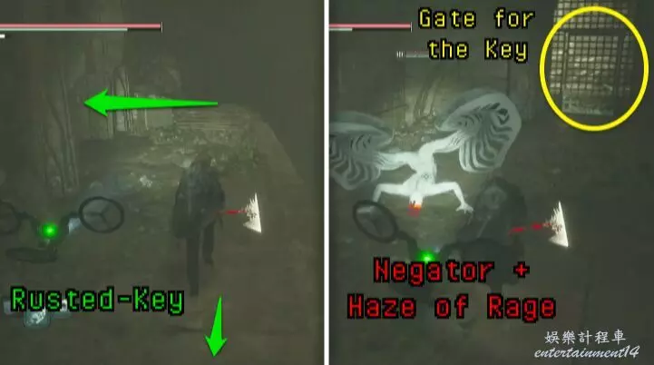 擊敗否定者後,用生銹的鑰匙解鎖閘門。
