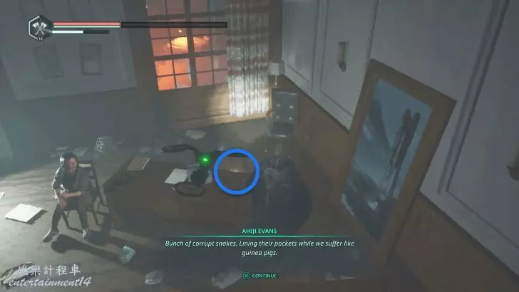 前往勒忒文化首要部A翼,進入建築後找到秘書室,室內有一名坐在桌旁的女性NPC阿吉·埃文斯。