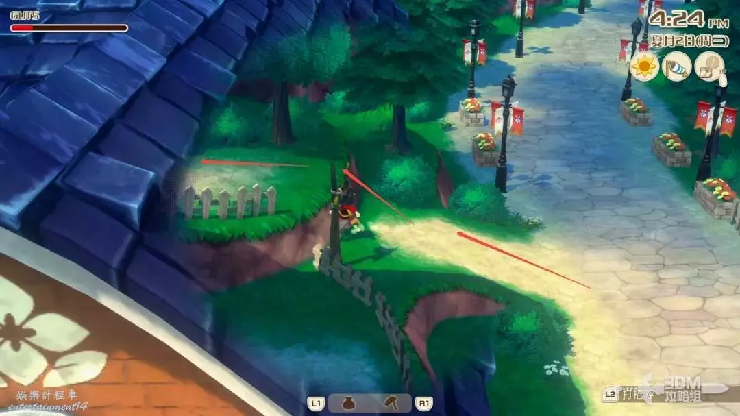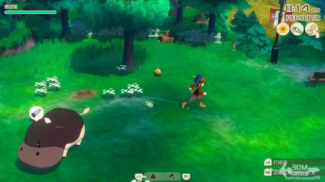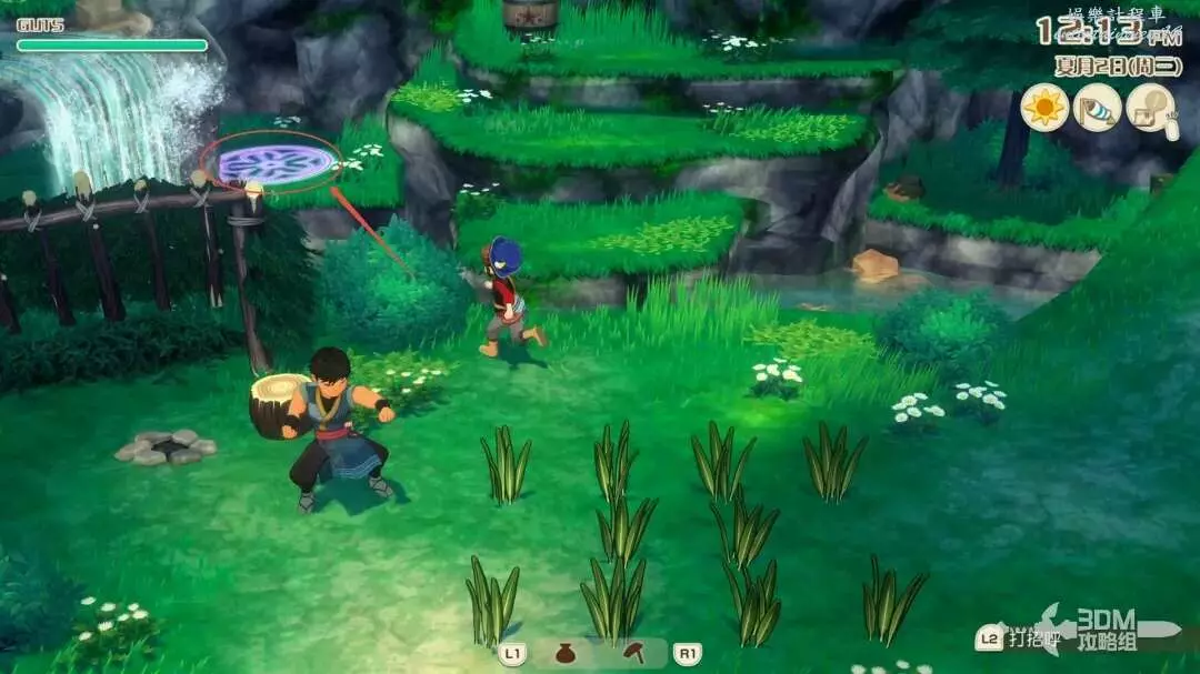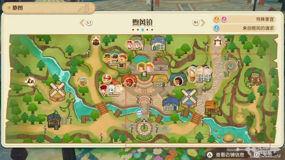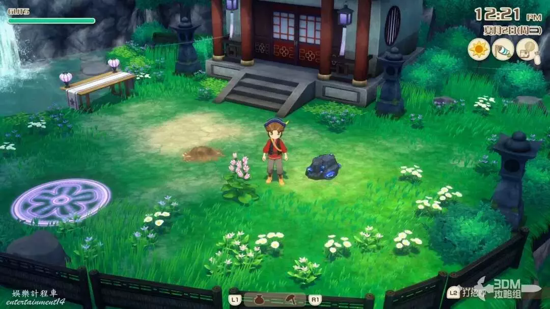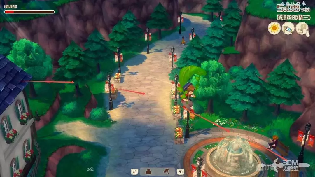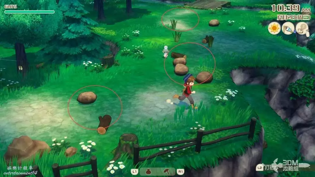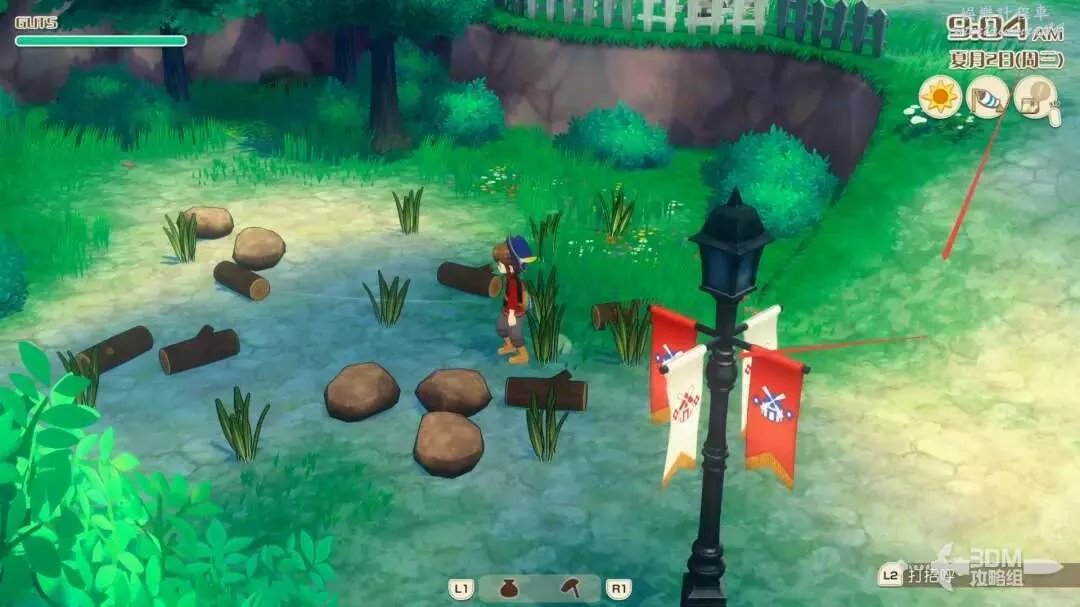 接下來就是家裡紅色風車旁邊,每次都會刷新一堆雜草;可以在這附近找到交採集物的小精靈,用來提升採集物的等級。