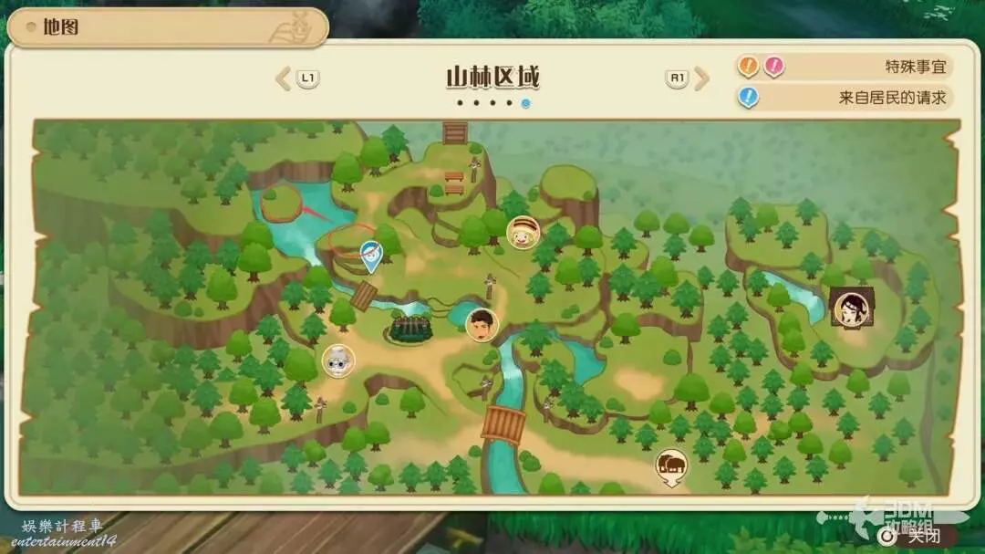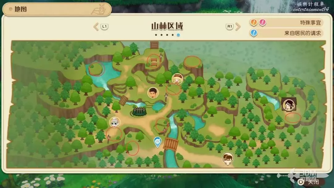 山林區域的資源大致再這些位置;