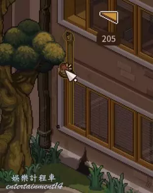 後進入最右上的204, 互動窗戶來到花園,多次輕擊貓籃子解鎖成就【延續】,下方貓洞互動還可以拿到黑手神秘鑰匙,