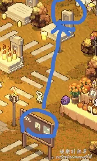 回到墓園,如圖把公告板上的逝者照片拖到最右上角的缺照片墓碑後多次輕擊互動解鎖【陰陽兩隔】