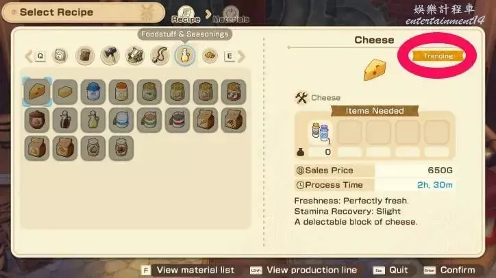 在加工台製作介面中,流行商品的右上角會顯示「流行圖示」(↑箭頭或特殊標記),方便快速識別需優先製作的商品。