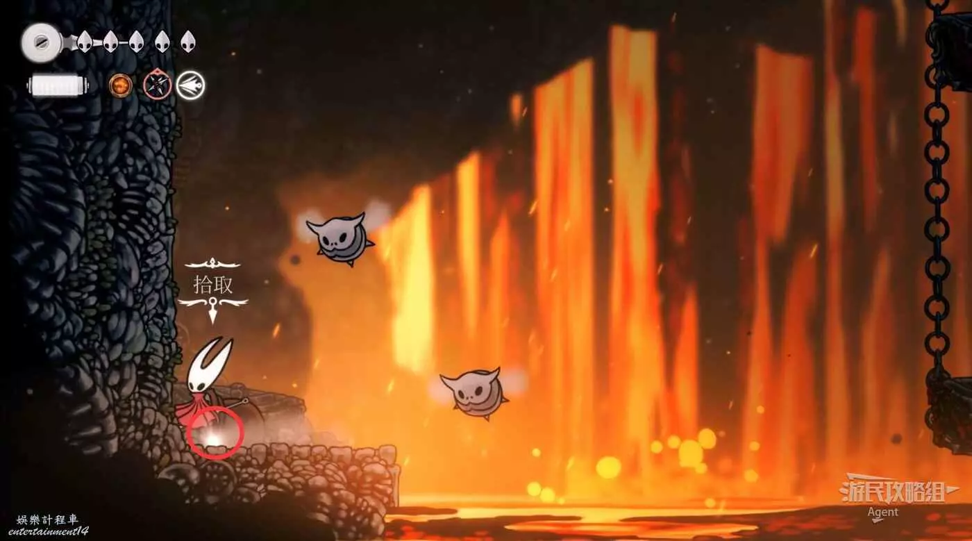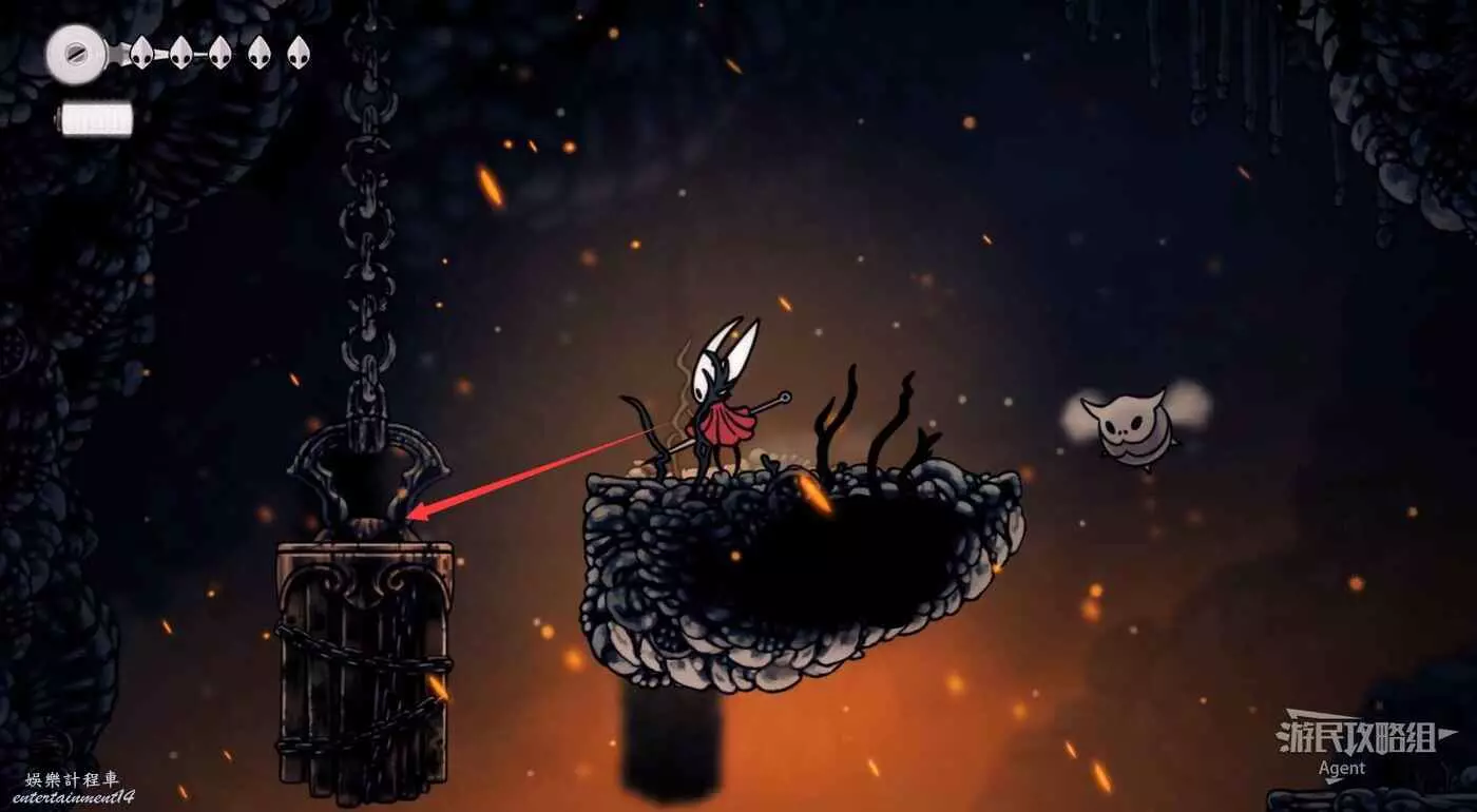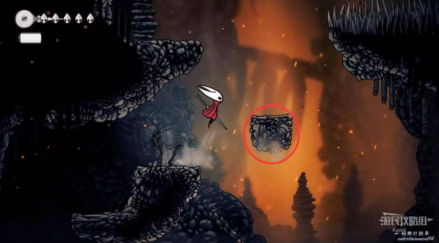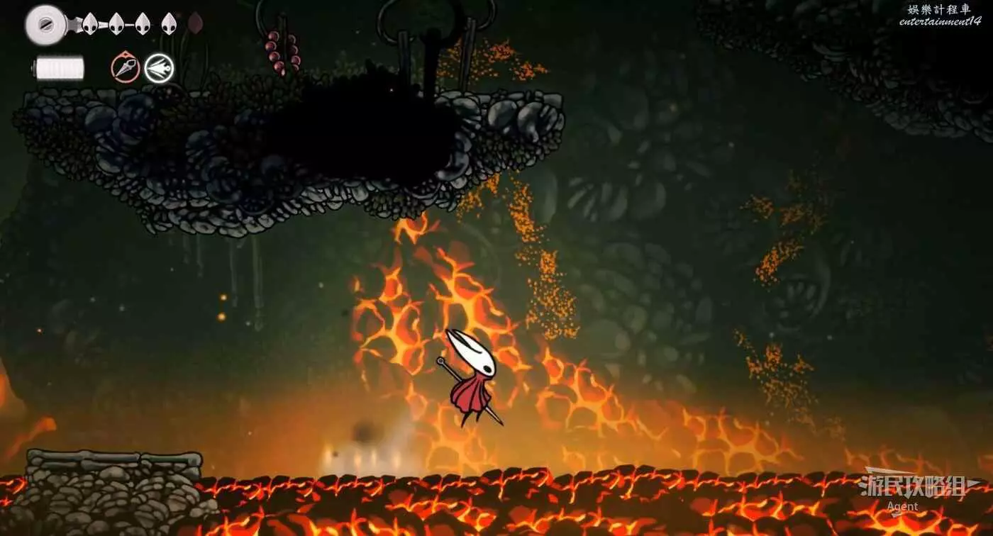 等岩漿流過後再跳躍,到上面找到只跳蚤。旁邊的石塊可以打碎方便回去。
